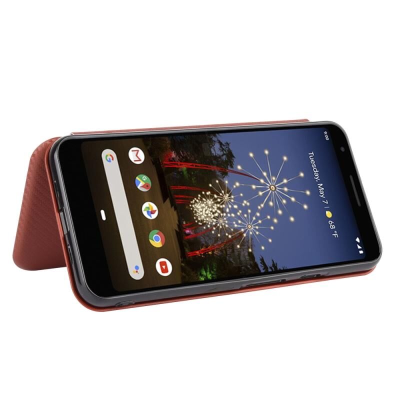 For Google Pixel 3a XL Carbon Fiber Texture Horizontal Flip TPU + PC + PU Leather Case with Card Slot(Brown)