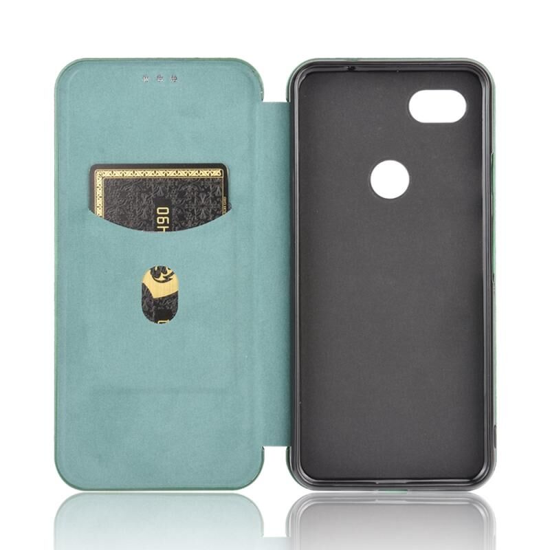 For Google Pixel 3a XL Carbon Fiber Texture Horizontal Flip TPU + PC + PU Leather Case with Card Slot(Green)