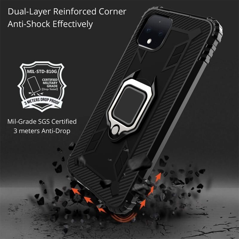 Για το Google Pixel 4 Προστατευτική θήκη από ανθρακονήματα με περιστρεφόμενη θήκη δακτυλίου 360 μοιρών (Μαύρο)