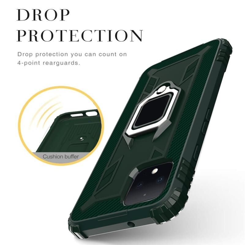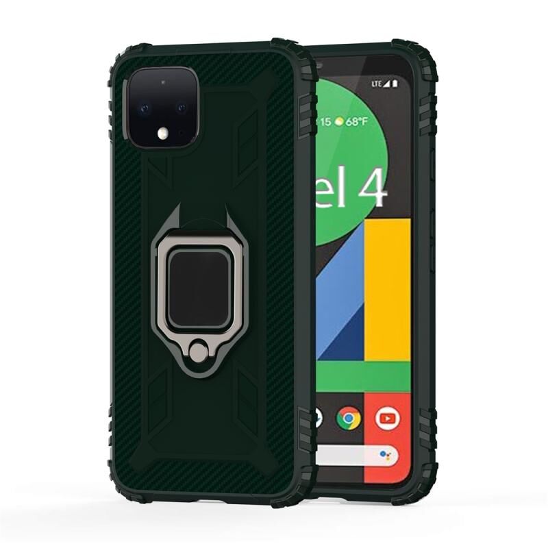 Για Google Pixel 4 Carbon Fiber Προστατευτική θήκη με 360 μοίρες περιστρεφόμενη θήκη δακτυλίου (πράσινο)
