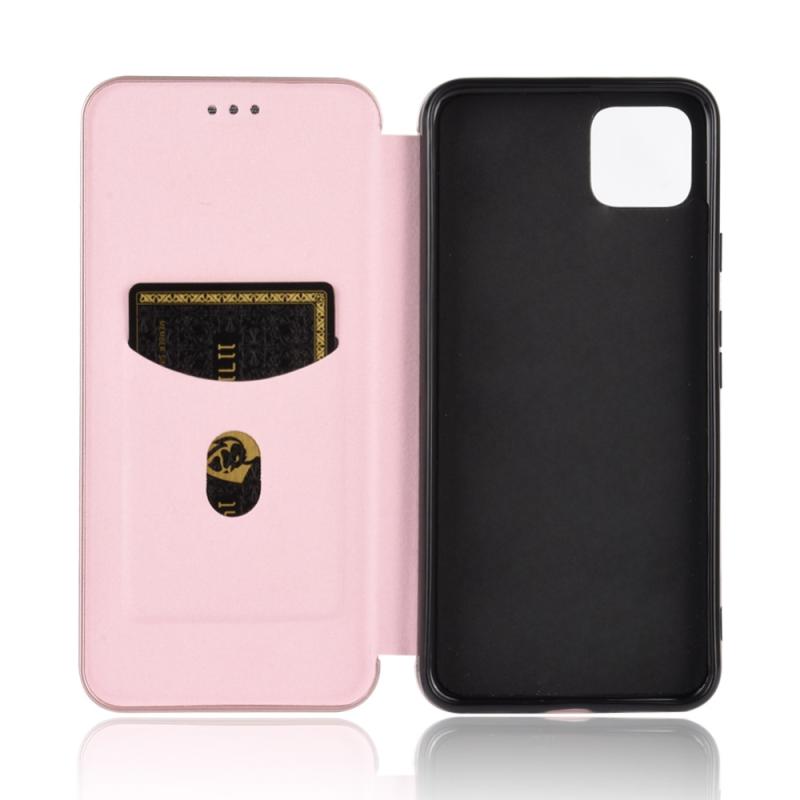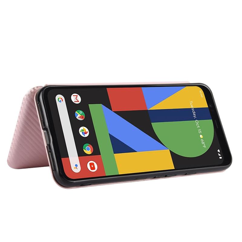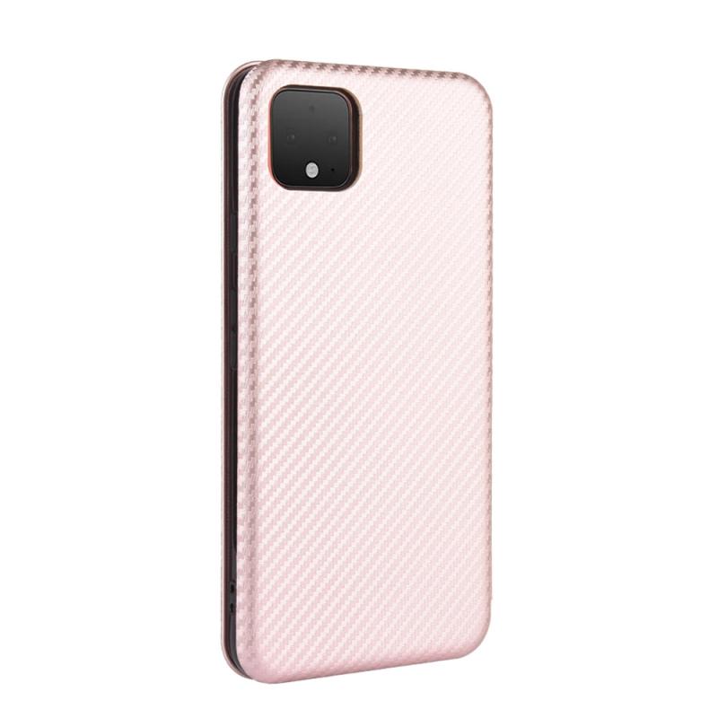 For Google Pixel 4 Carbon Fiber Texture Horizontal Flip TPU + PC + PU Leather Case with Card Slot(Pink)