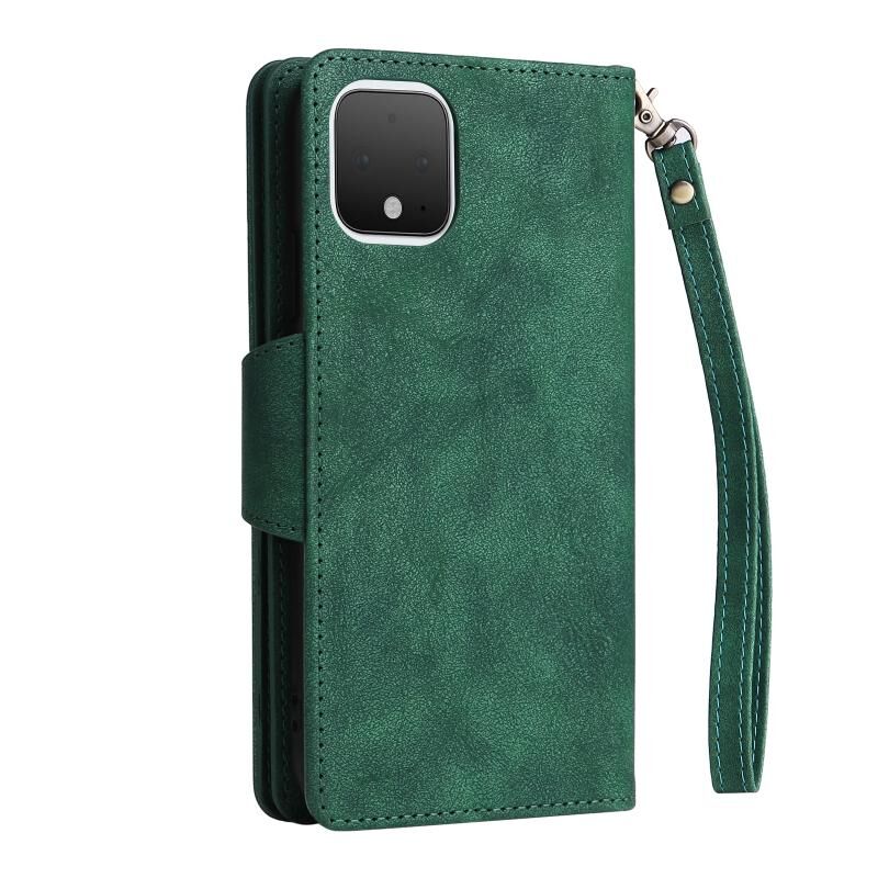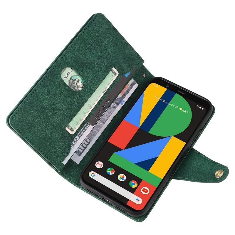 Για το Google Pixel 4 Rivet πόρπη 9 κάρτες τρεις φορές δερμάτινη θήκη τηλεφώνου (πράσινο)