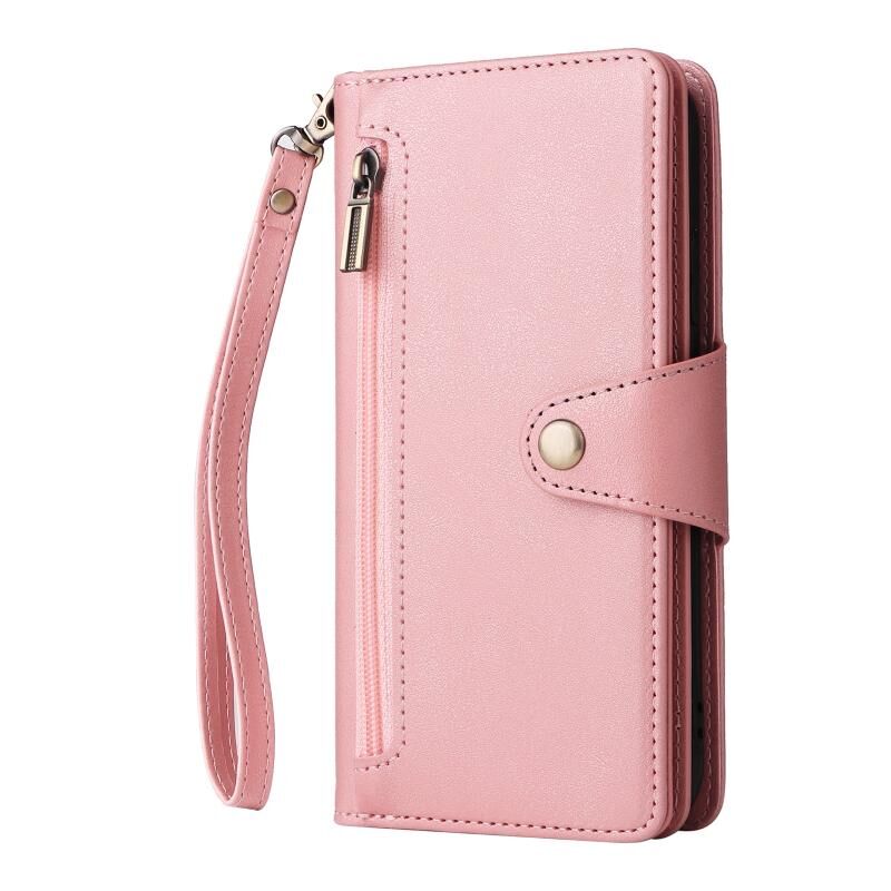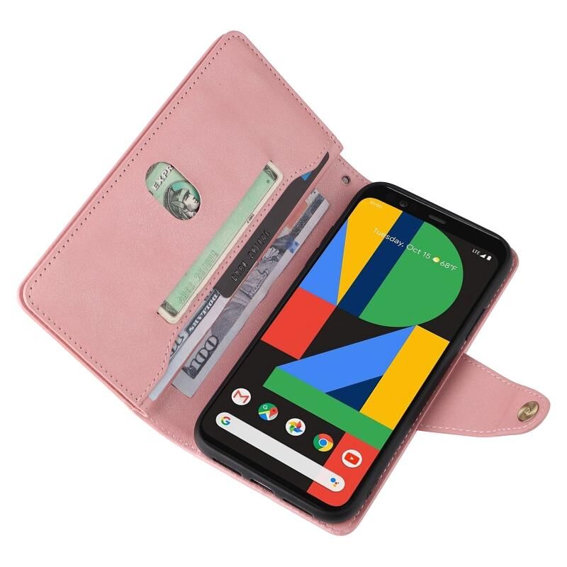 Για το Google Pixel 4 Rivet πόρπη 9 κάρτες τρεις φορές δερμάτινη θήκη τηλεφώνου (ροζ χρυσό)