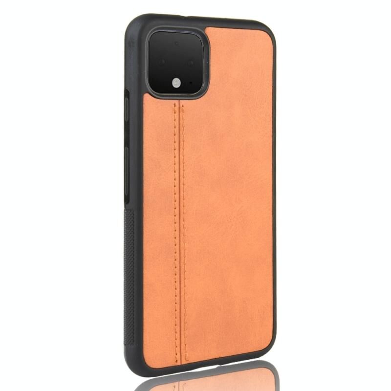 Για το Google Pixel 4 Shockproof Ράψιμο μοτίβο αγελάδας δέρμα PC + PU + TPU υπόθεση (πορτοκαλί)