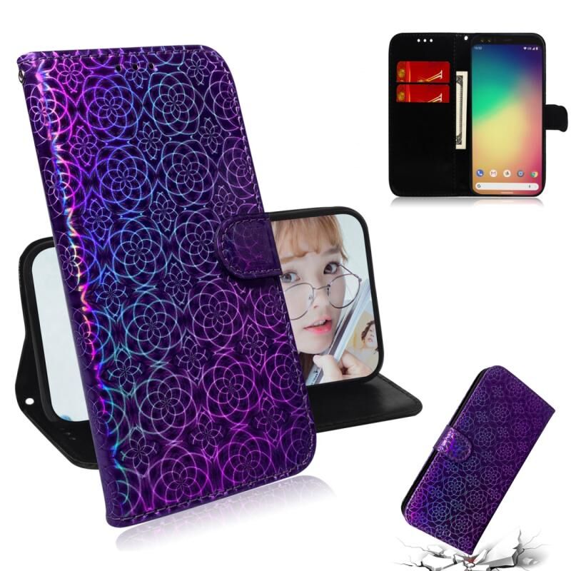 Για το Google Pixel 4 Αμιγές χρώμα πολύχρωμο μαγνητική πόρπη οριζόντια Flip PU δέρμα υπόθεση με κάτοχο & υποδοχές για κάρτες & πορτοφόλι & κορδόνι (μωβ)