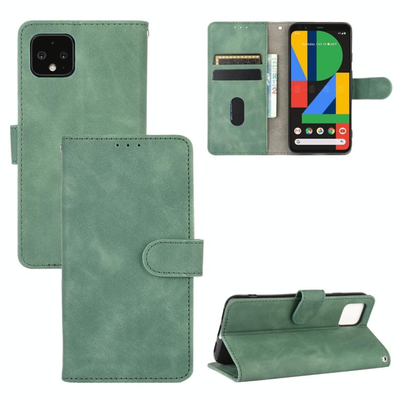 For Google Pixel 4 Solid Color Skin Feel Magnetic Buckle Horizontal Flip Calf Texture PU Leather Case with Holder & Card Slots & Wallet(Green)