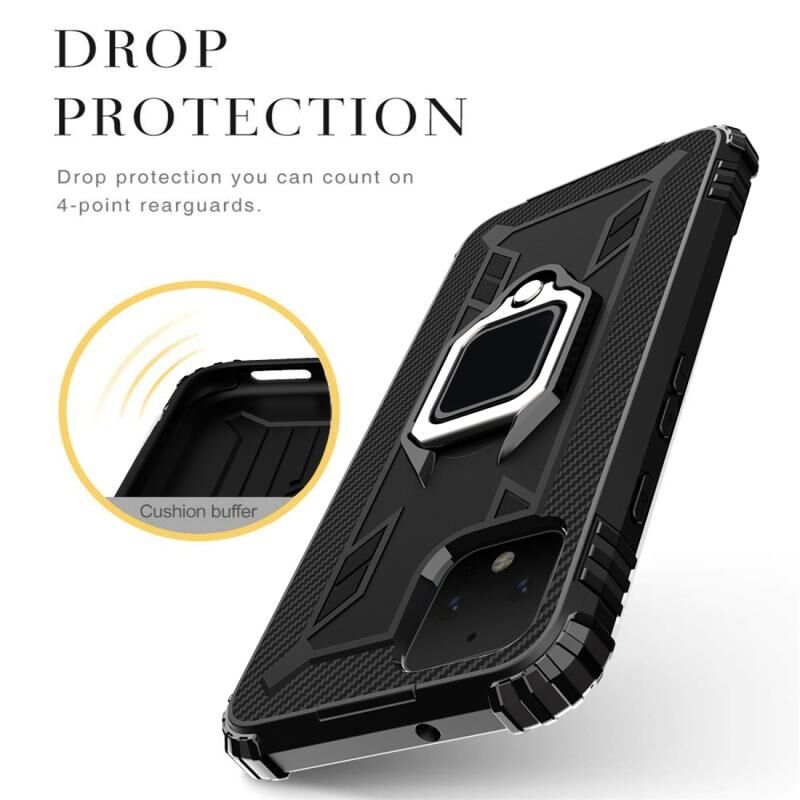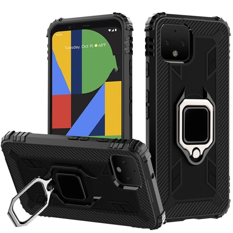 Για το Google Pixel 4 XL Προστατευτική θήκη από ανθρακονήματα με περιστρεφόμενη θήκη δακτυλίου 360 μοιρών (μαύρο)