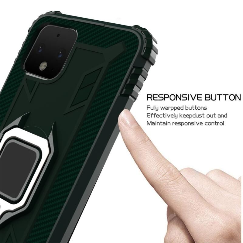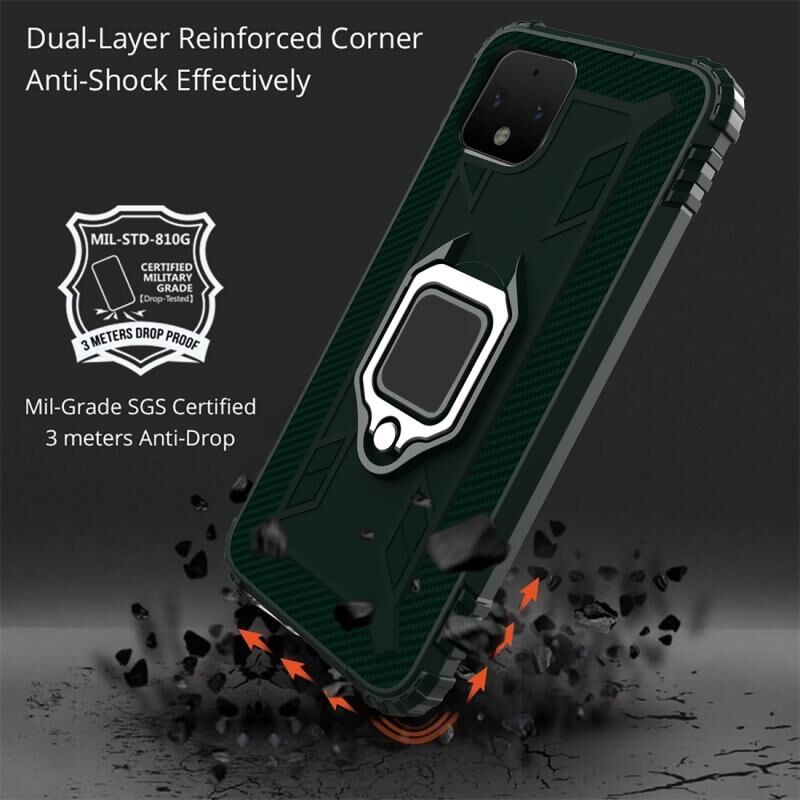 Για το Google Pixel 4 XL Προστατευτική θήκη από ανθρακονήματα με περιστρεφόμενη θήκη δακτυλίου 360 μοιρών (πράσινο)