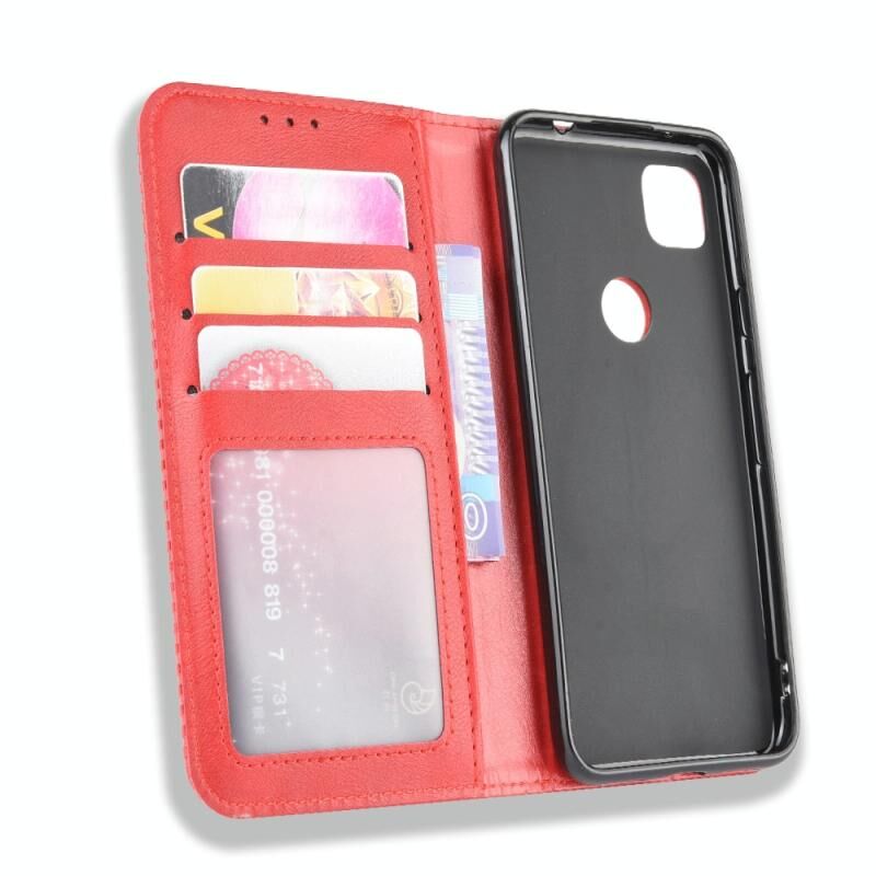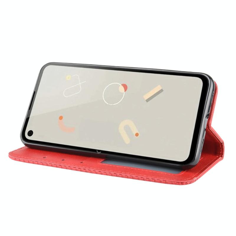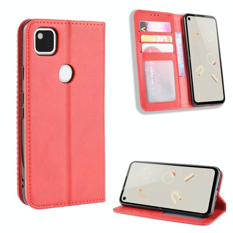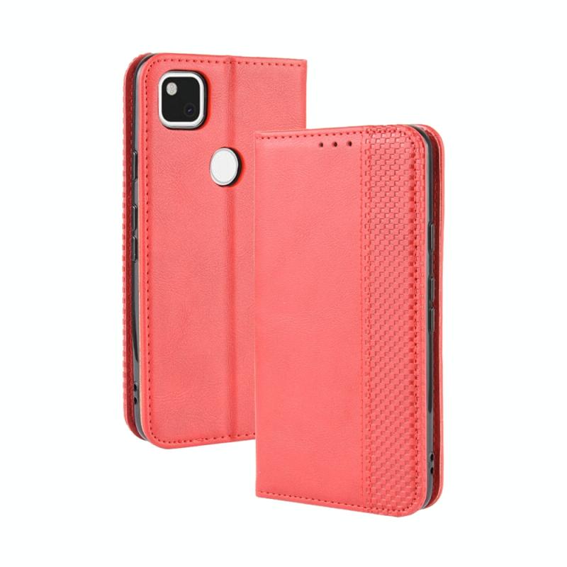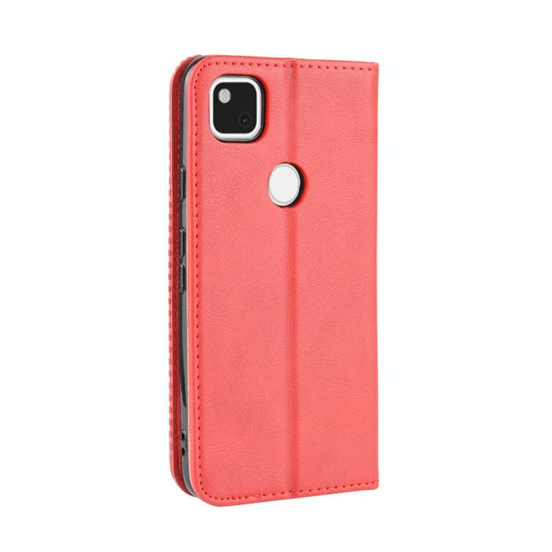 For Google Pixel 4a 4G Magnetic Buckle Retro Crazy Horse Texture Horizontal Flip Leather Case with Holder & Card Slots & Photo Frame(Red)