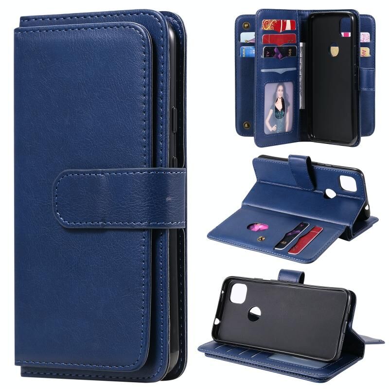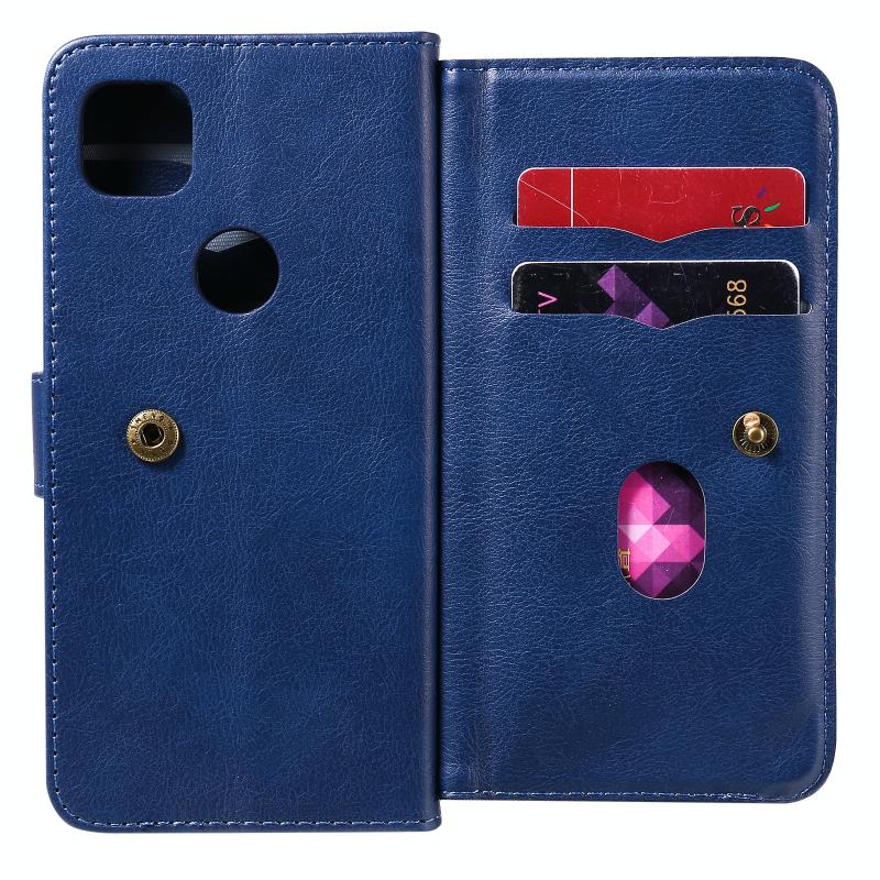 For Google Pixel 4a 4G Multifunctional Magnetic Copper Buckle Horizontal Flip Leather Case with Bracket & 10 Card Slots & Wallet & Photo Frame(Dark Blue)