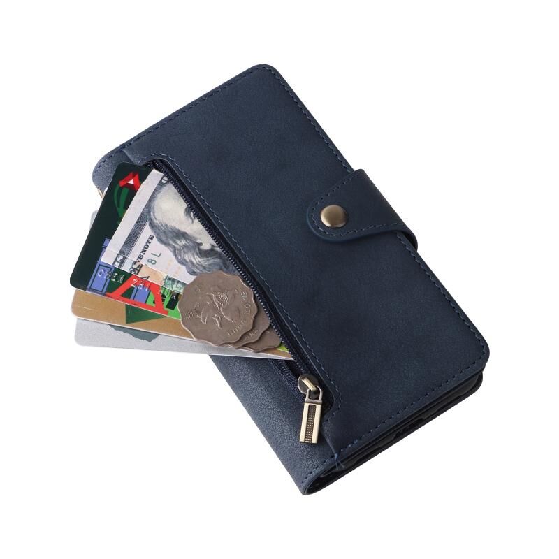 Για το Google Pixel 4A 4G Rivet πόρπη 9 κάρτες τρεις φορές δερμάτινη θήκη τηλεφώνου (μπλε)