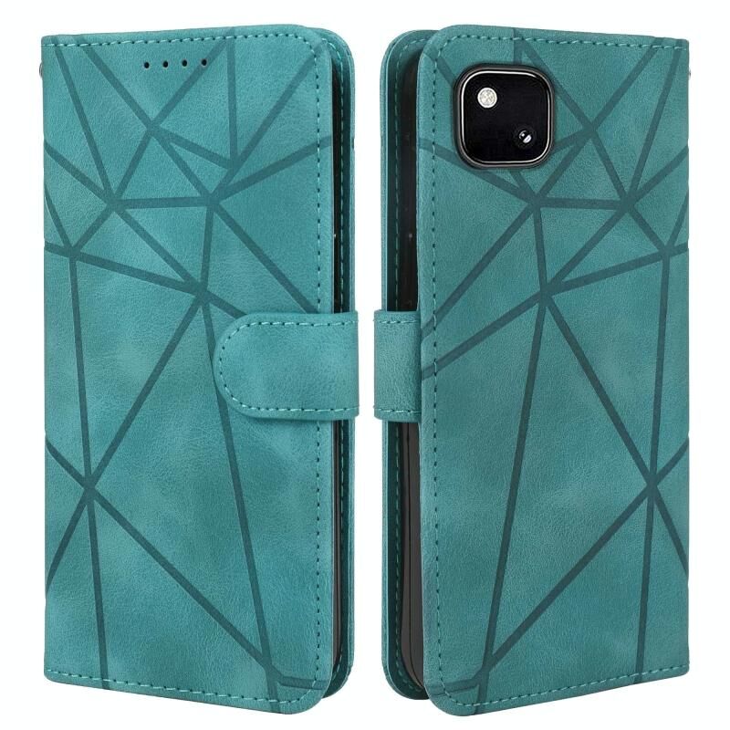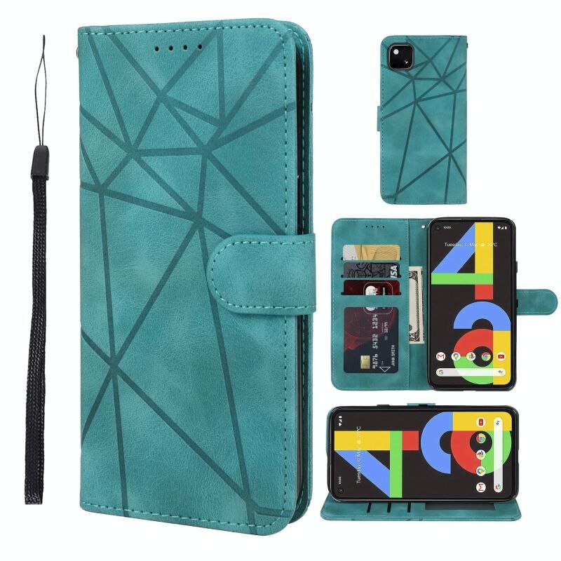 Για το Google Pixel 4a 4G Skin Feel Γεωμετρικές γραμμές δερμάτινη θήκη τηλεφώνου (πράσινο)
