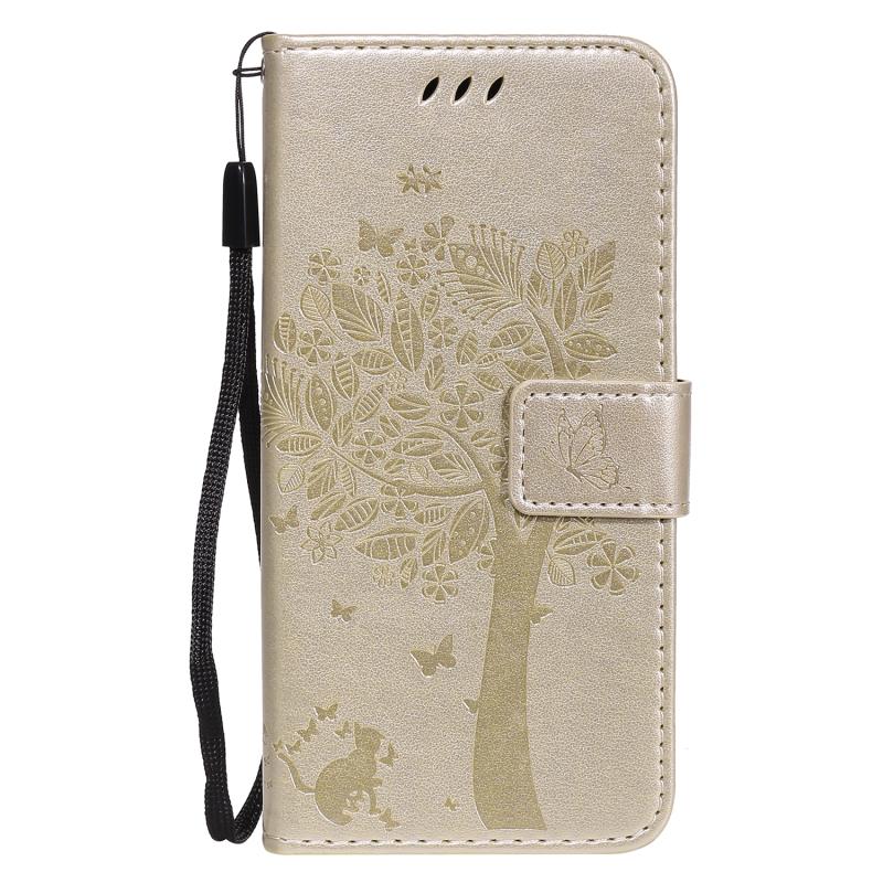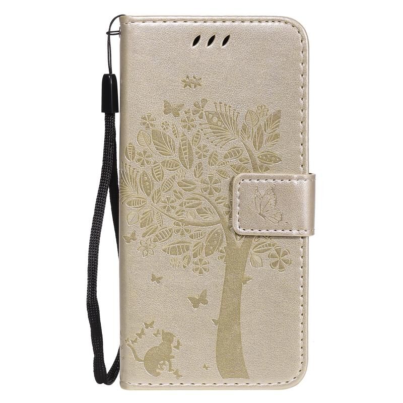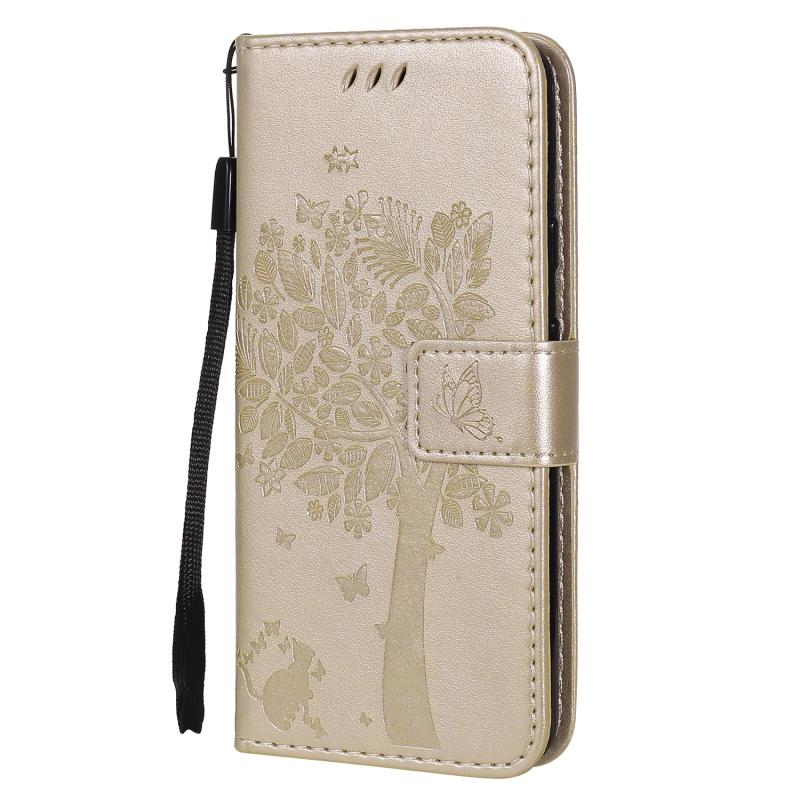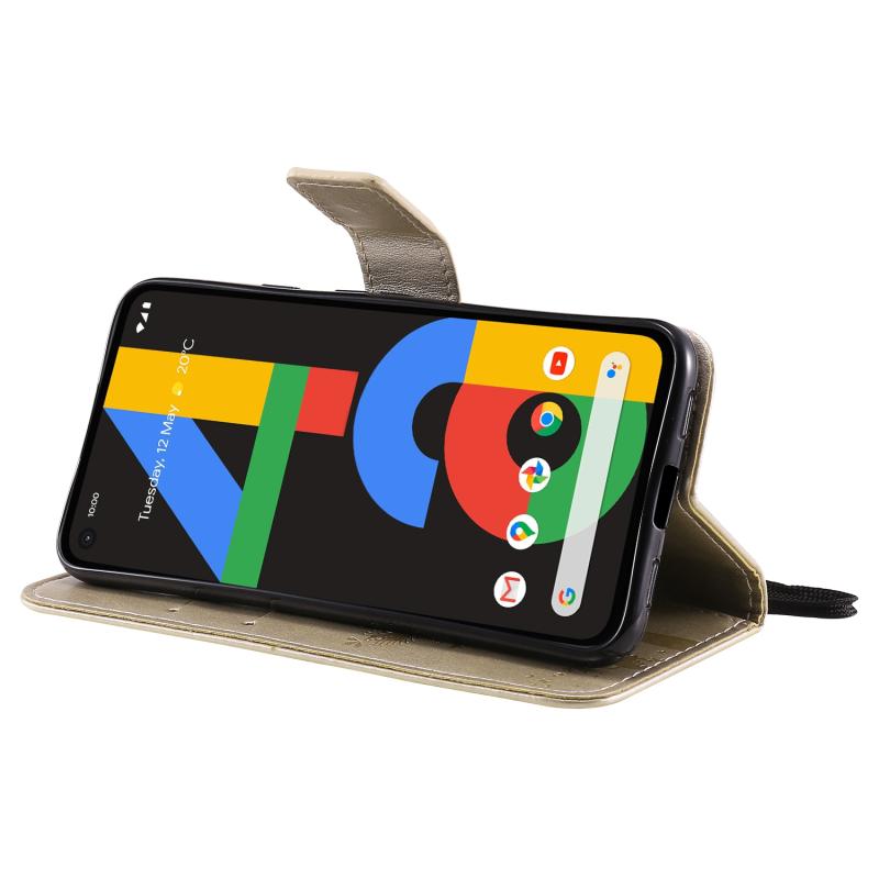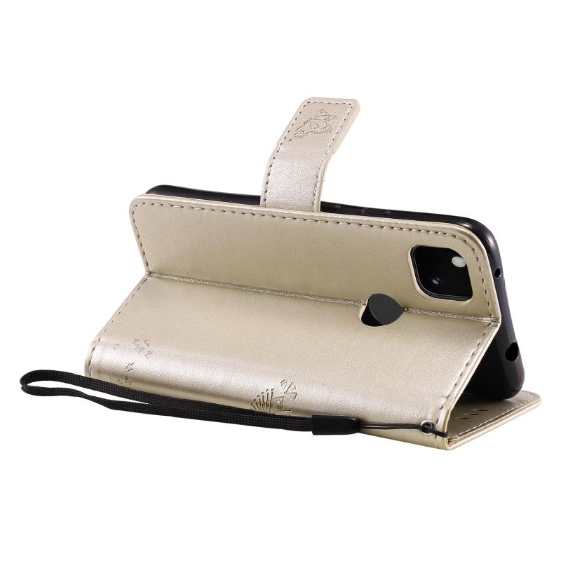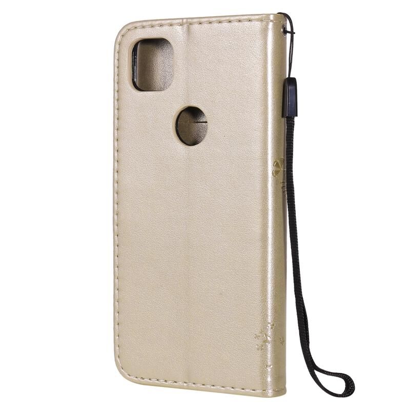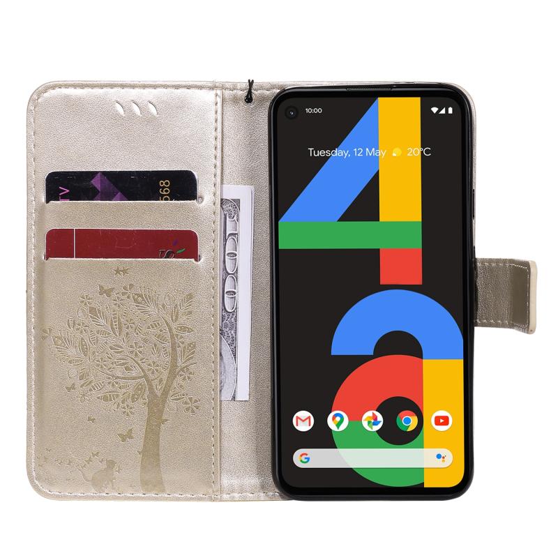 For Google Pixel 4a 4G Tree & Cat Embossed Pattern Horizontal Flip Leather Case with Holder & Card Slots & Wallet & Lanyard(Gold)