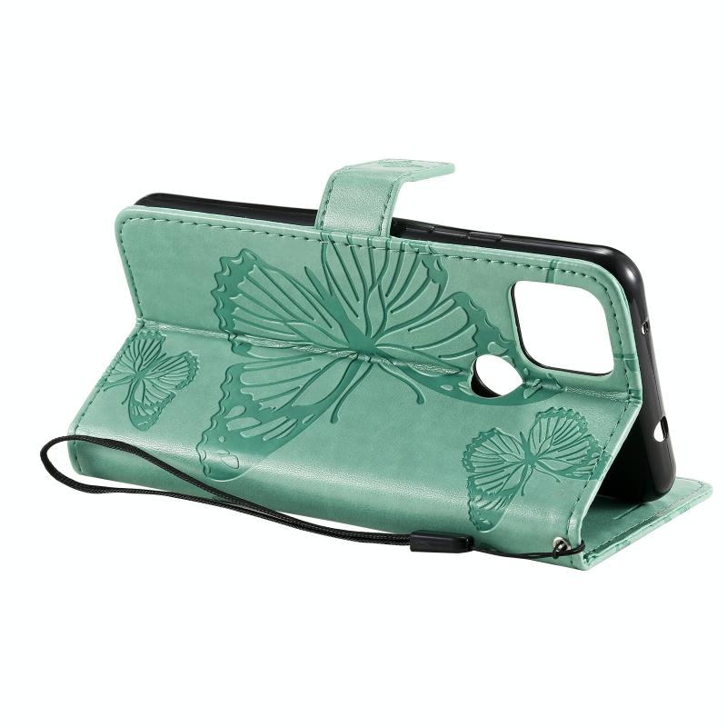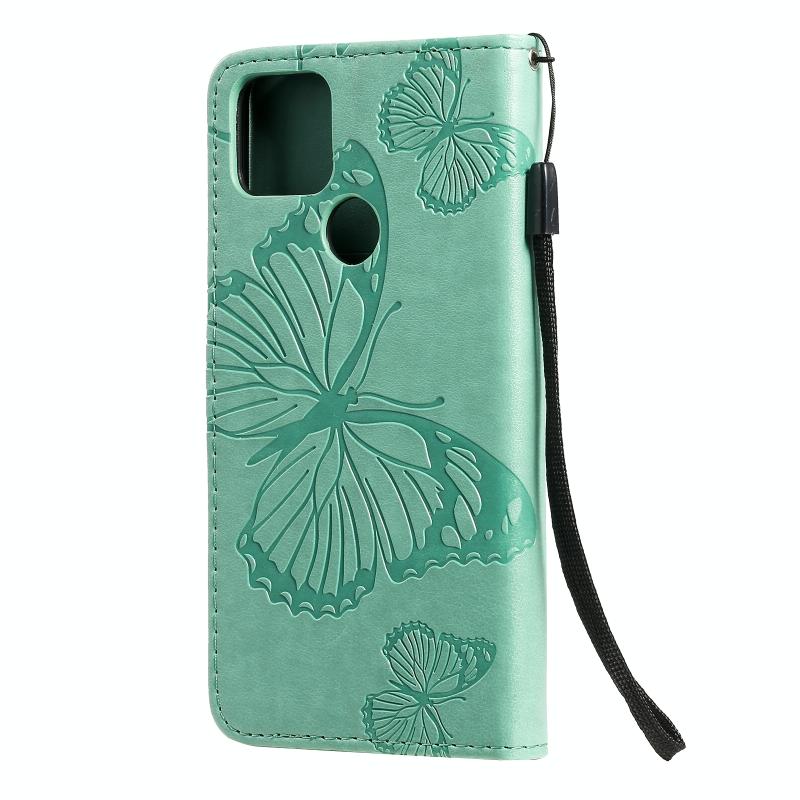 For Google Pixel 4A 5G 3D Butterflies Embossing Pattern Horizontal Flip Leather Case with Holder & Card Slot & Wallet & Lanyard(Green)
