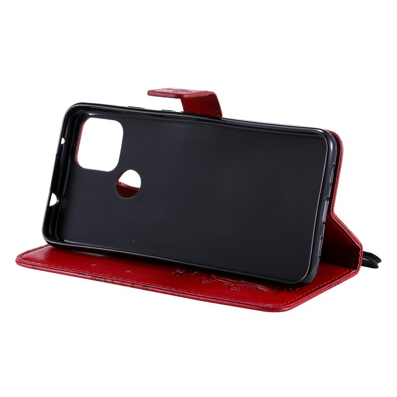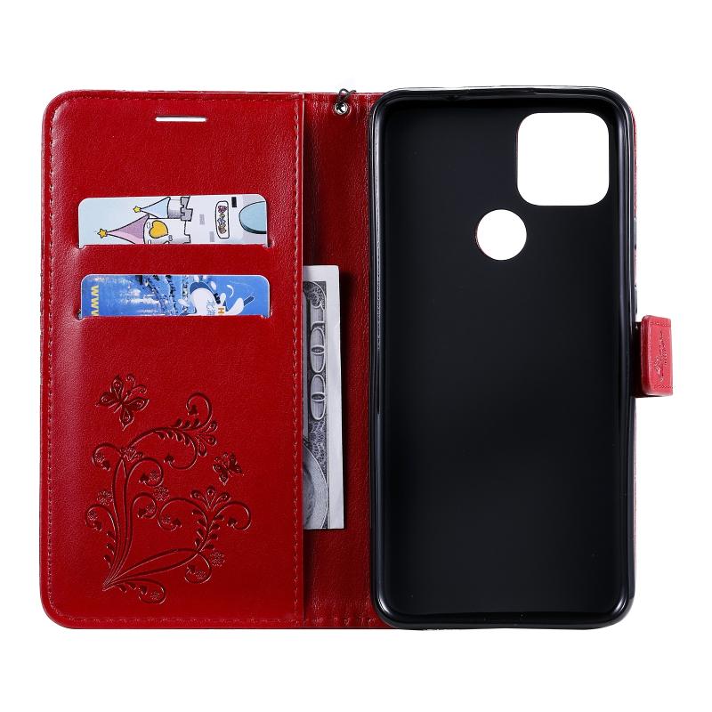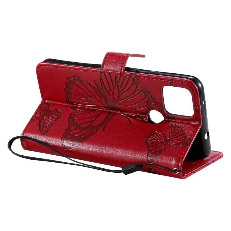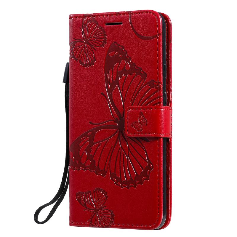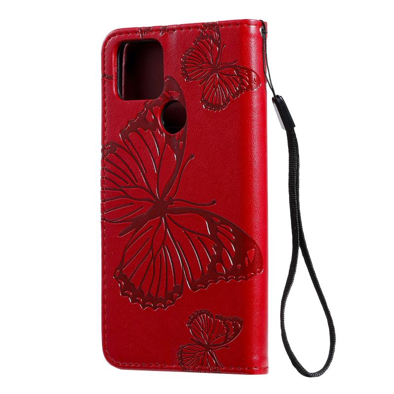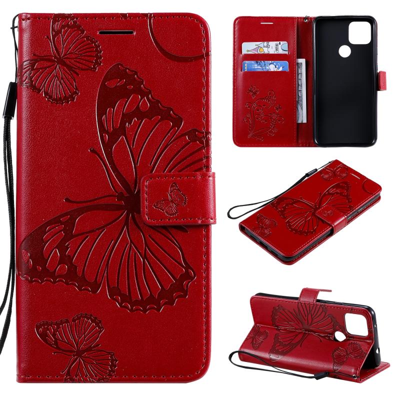 For Google Pixel 4A 5G 3D Butterflies Embossing Pattern Horizontal Flip Leather Case with Holder & Card Slot & Wallet & Lanyard(Red)