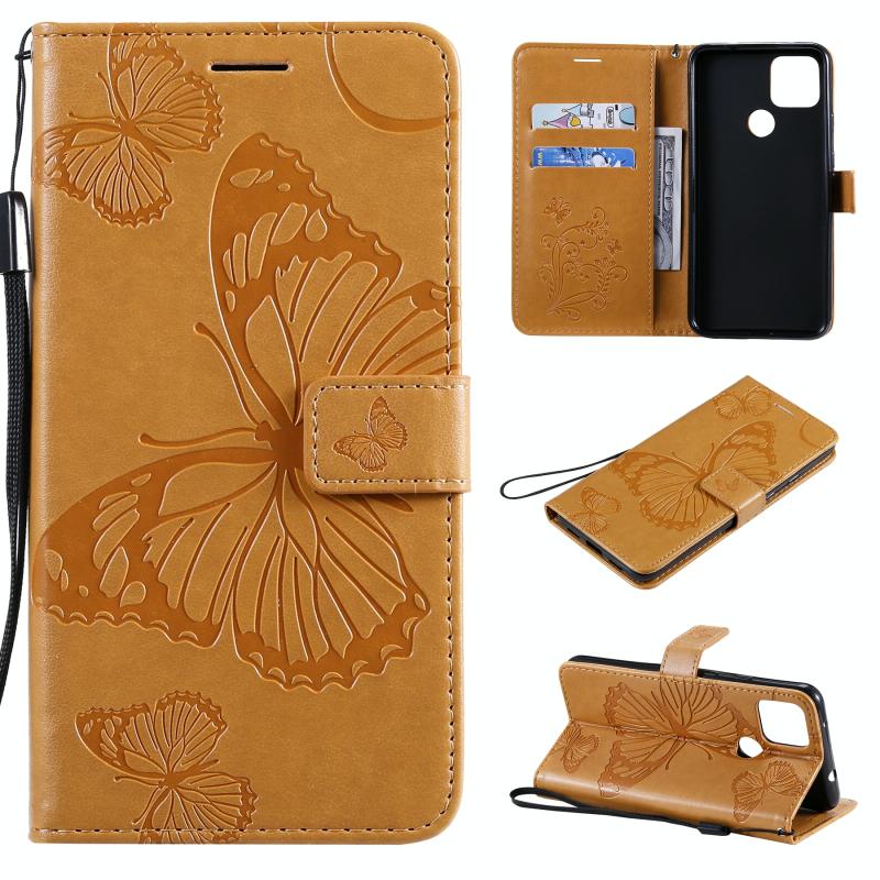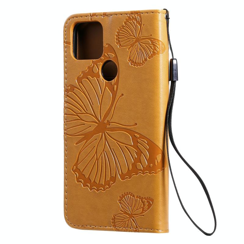 For Google Pixel 4A 5G 3D Butterflies Embossing Pattern Horizontal Flip Leather Case with Holder & Card Slot & Wallet & Lanyard(Yellow)