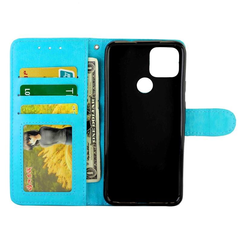 For Google Pixel 4a 5G Crazy Horse Texture Leather Horizontal Flip Protective Case with Holder & Card Slots & Wallet & Photo Frame(Baby Blue)