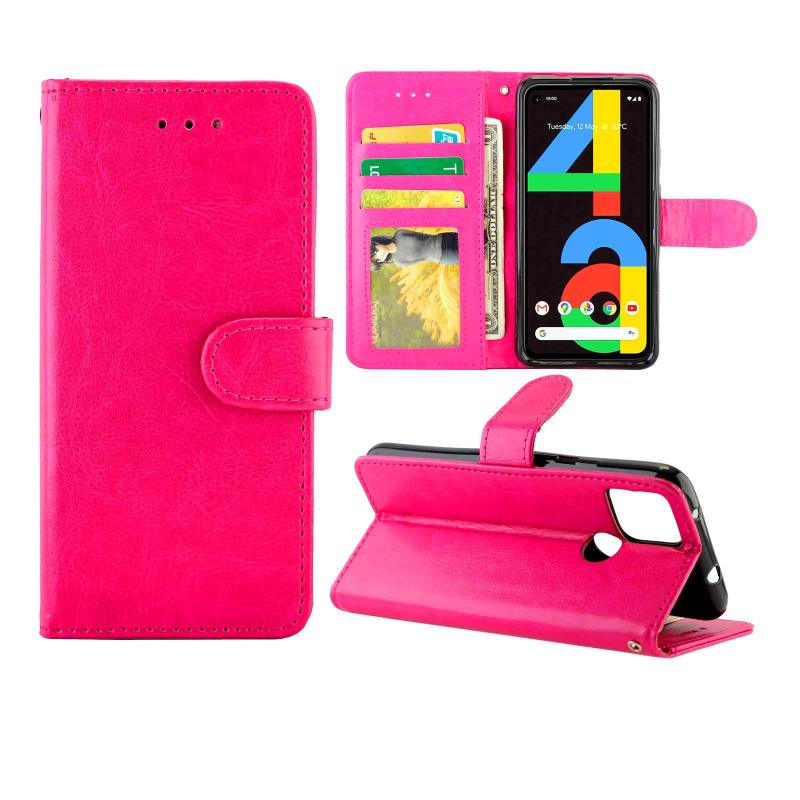 For Google Pixel 4a 5G Crazy Horse Texture Leather Horizontal Flip Protective Case with Holder & Card Slots & Wallet & Photo Frame(Rose Red)