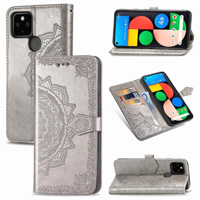 Θήκη Google Pixel 4a 5G, Μισό Μανταλά, Δερμάτινη PU με ανάγλυφο σχέδιο, Οριζόντια, με Θήκες Καρτών & Στήριγμα & Πορτοφόλι & Λουρί (Μαύρο)