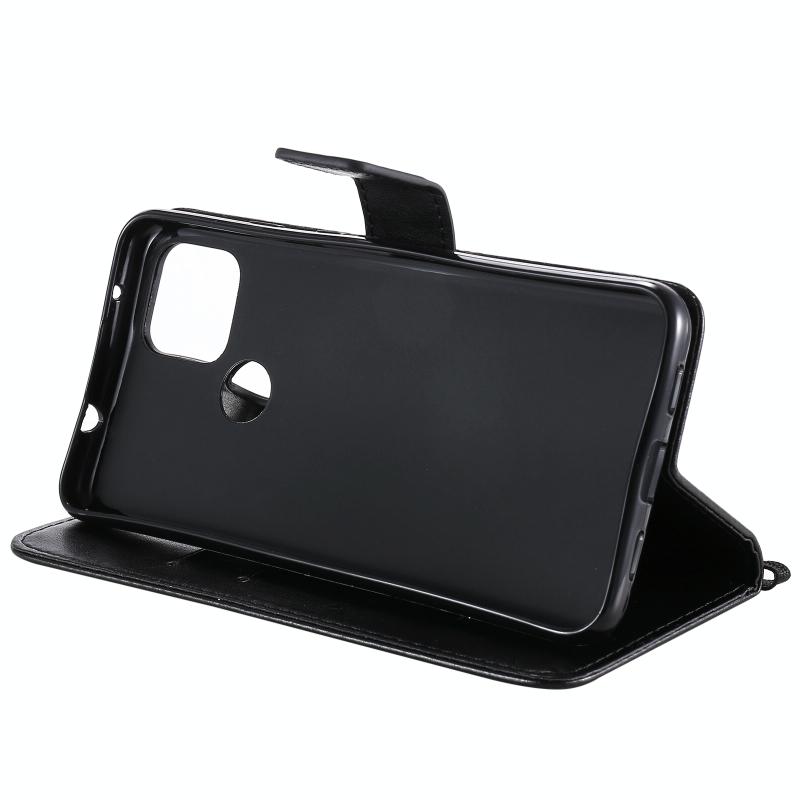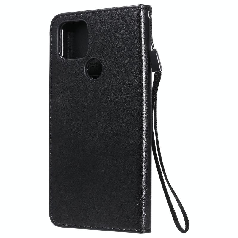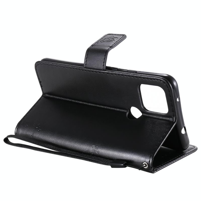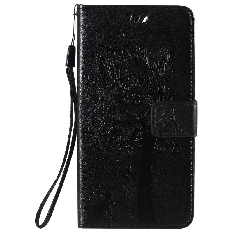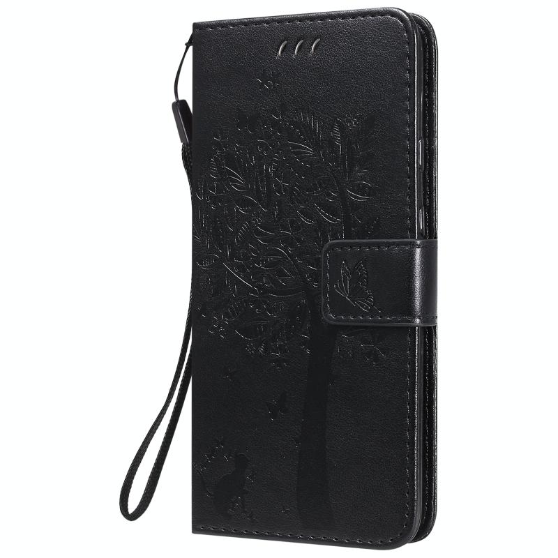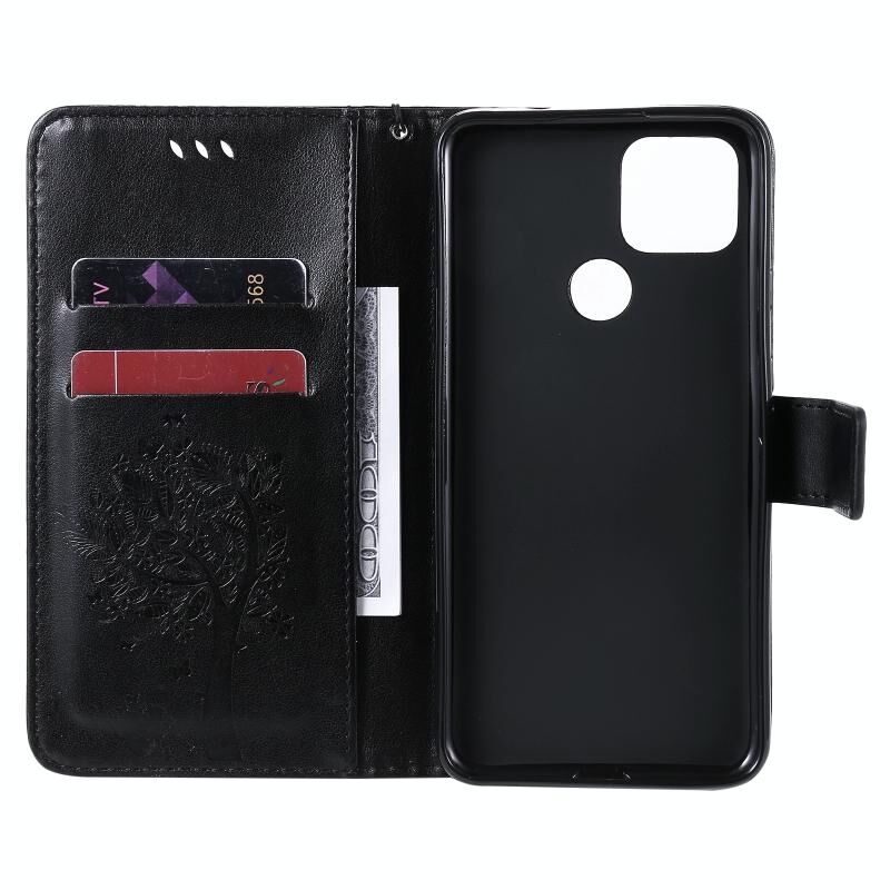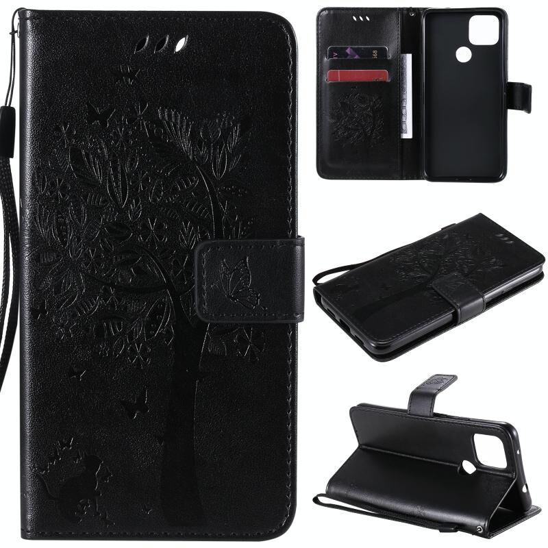 For Google Pixel 4a 5G / Pixel 5 XL Tree & Cat Embossed Pattern Horizontal Flip Leather Case with Holder & Card Slots & Wallet & Lanyard(Black)