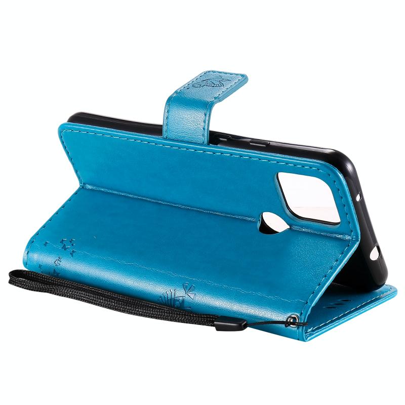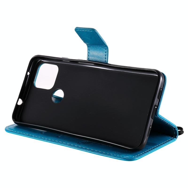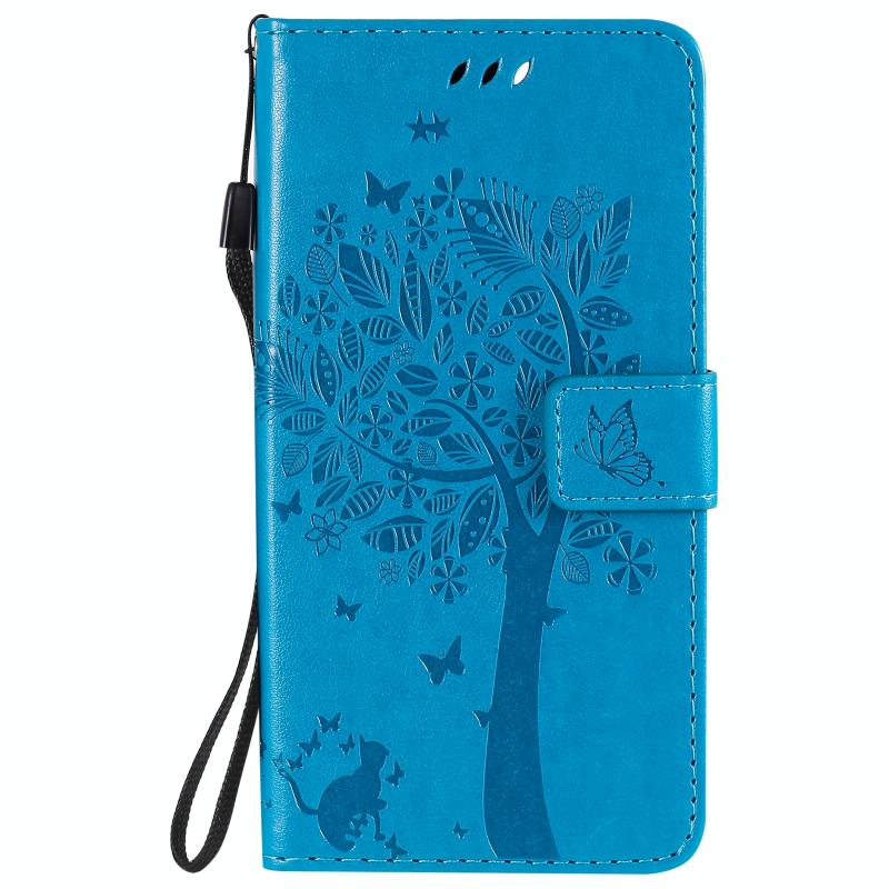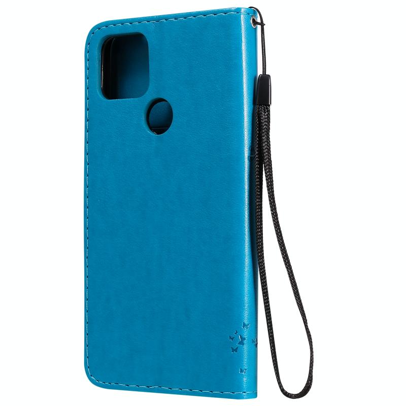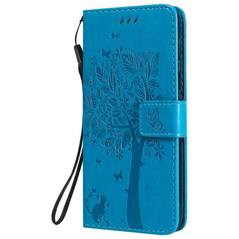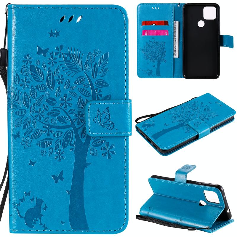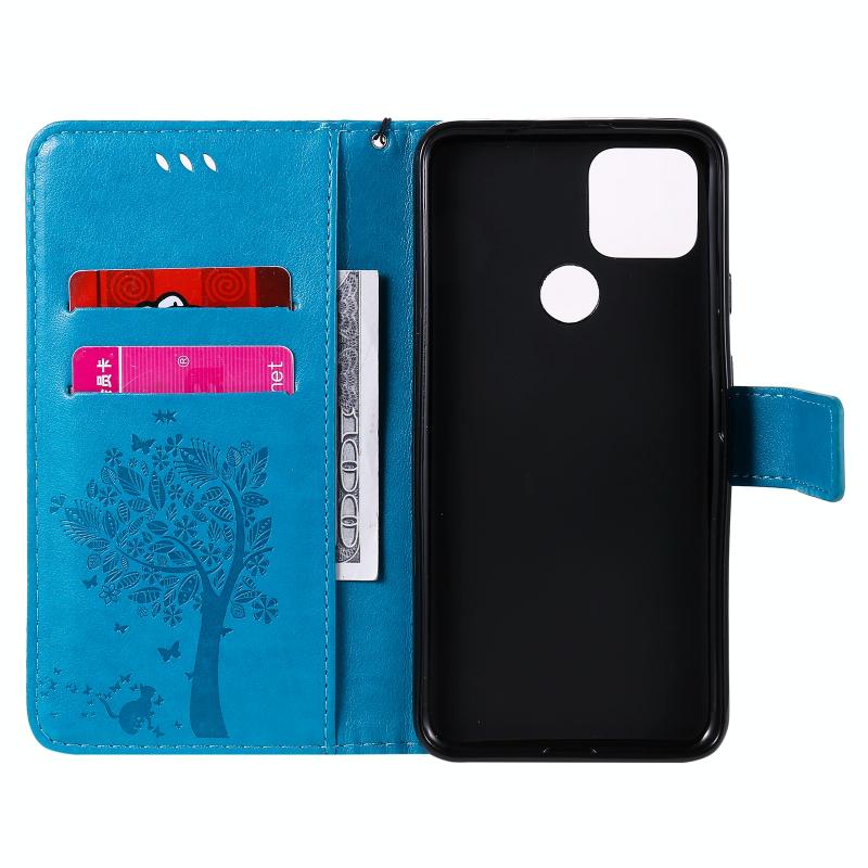 For Google Pixel 4a 5G / Pixel 5 XL Tree & Cat Embossed Pattern Horizontal Flip Leather Case with Holder & Card Slots & Wallet & Lanyard(Blue)