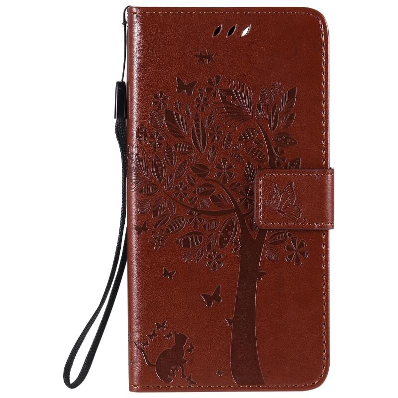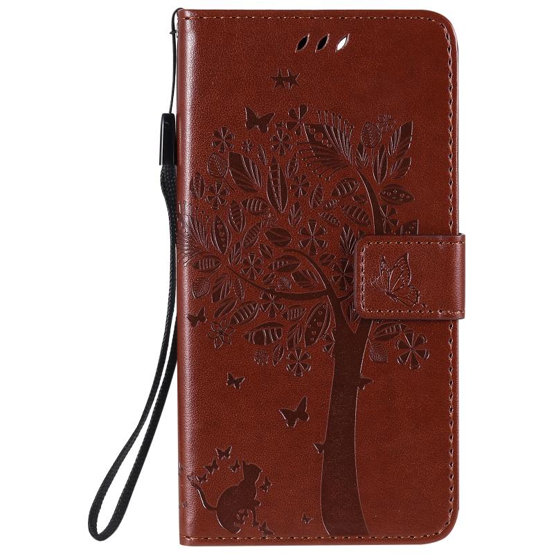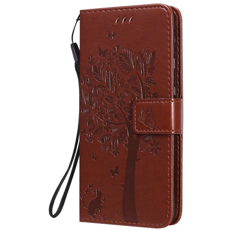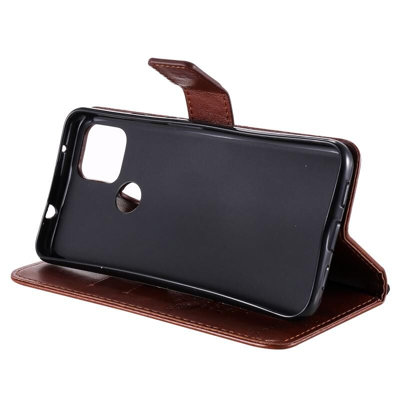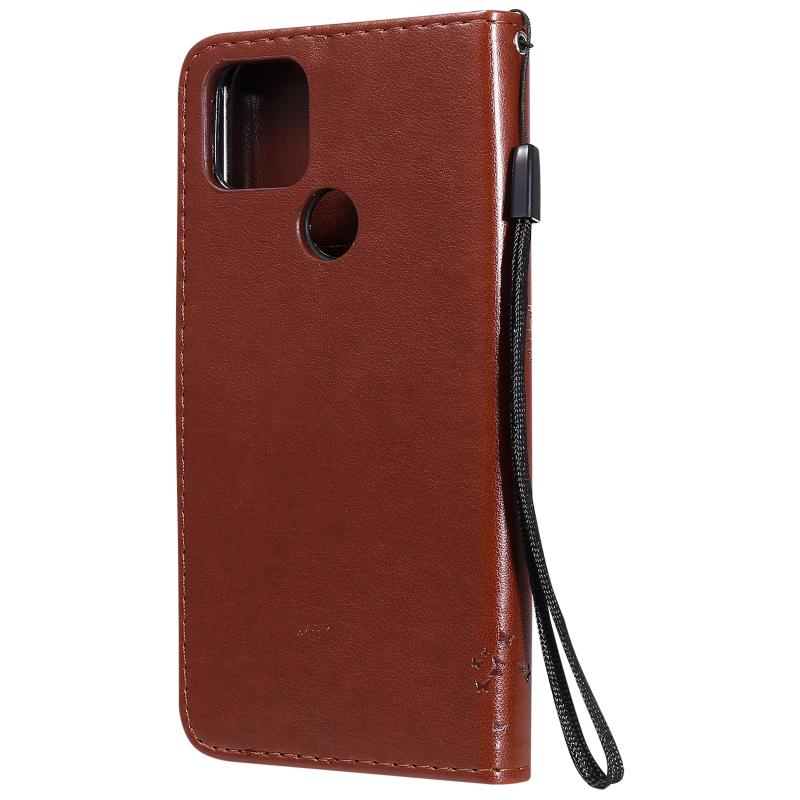 For Google Pixel 4a 5G / Pixel 5 XL Tree & Cat Embossed Pattern Horizontal Flip Leather Case with Holder & Card Slots & Wallet & Lanyard(Coffee)