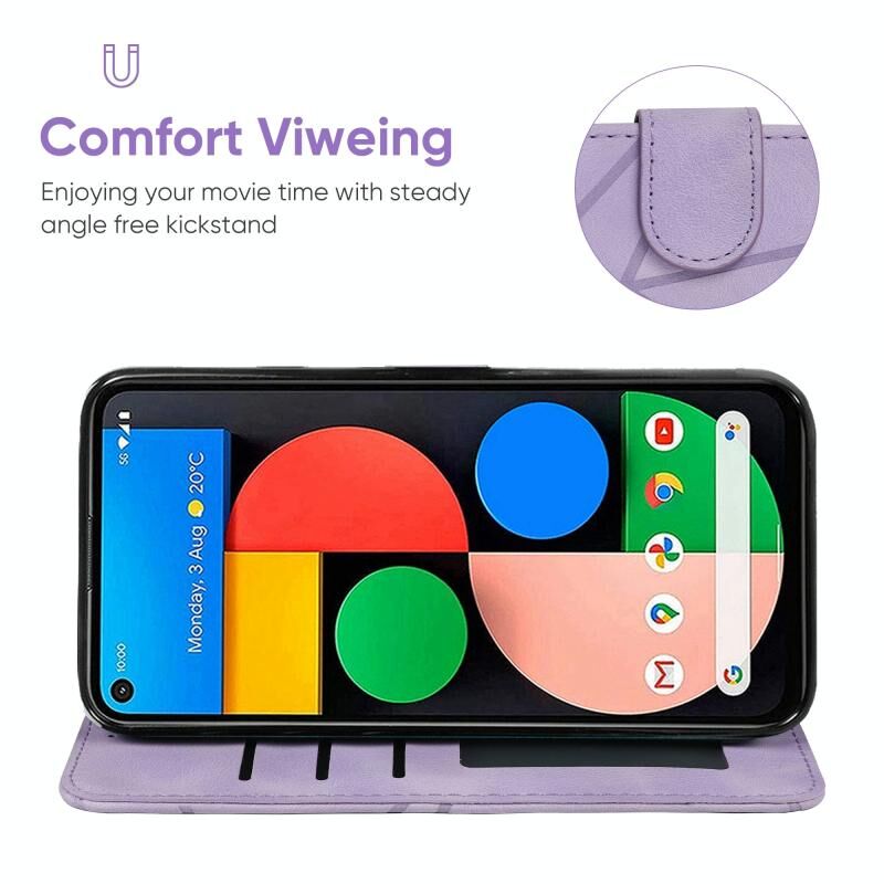 Για το Google Pixel 4a 5G Skin Feel Γεωμετρικές γραμμές δερμάτινη θήκη τηλεφώνου (μωβ)