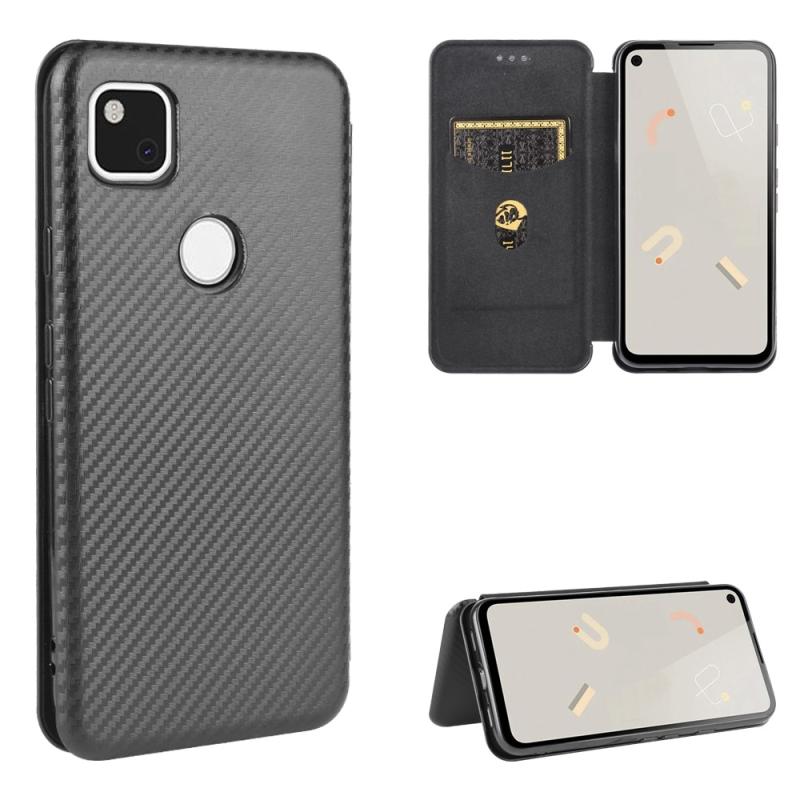 For Google Pixel 4a Carbon Fiber Texture Horizontal Flip TPU + PC + PU Leather Case with Card Slot(Black)