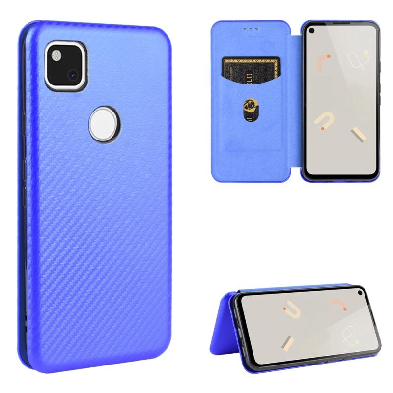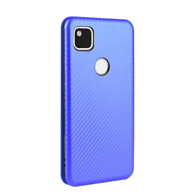 For Google Pixel 4a Carbon Fiber Texture Horizontal Flip TPU + PC + PU Leather Case with Card Slot(Blue)