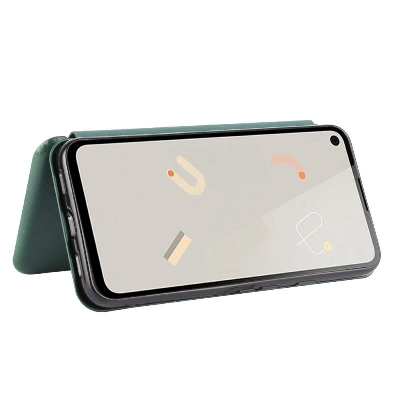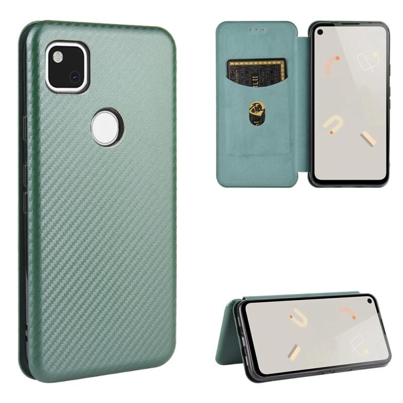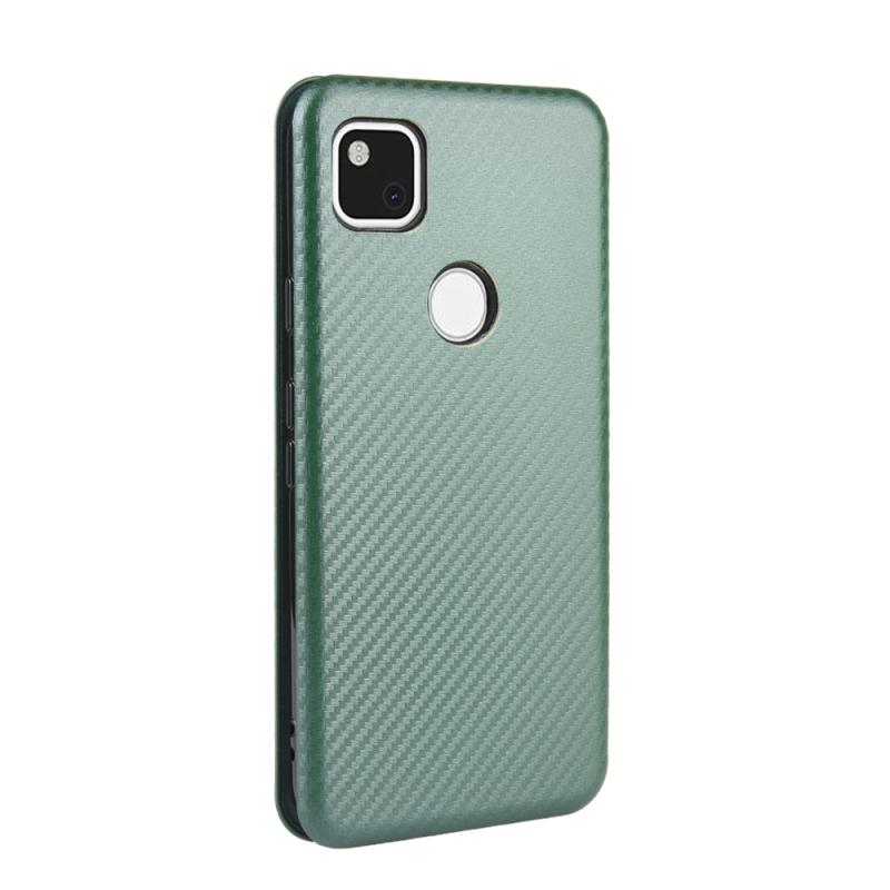 For Google Pixel 4a Carbon Fiber Texture Horizontal Flip TPU + PC + PU Leather Case with Card Slot(Green)