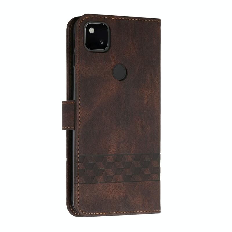 For Google Pixel 4a Cubic Skin Feel Flip Leather Phone Case(Dark Brown)