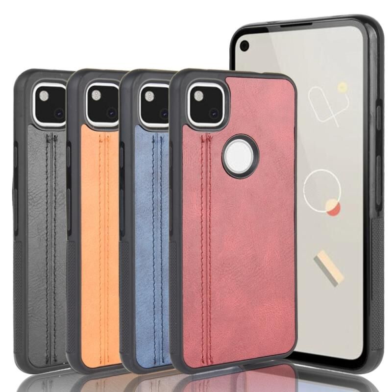Για το Google Pixel 4a Shockproof Ράψιμο μοτίβο αγελάδας δέρμα PC + PU + θήκη TPU (Μαύρο)