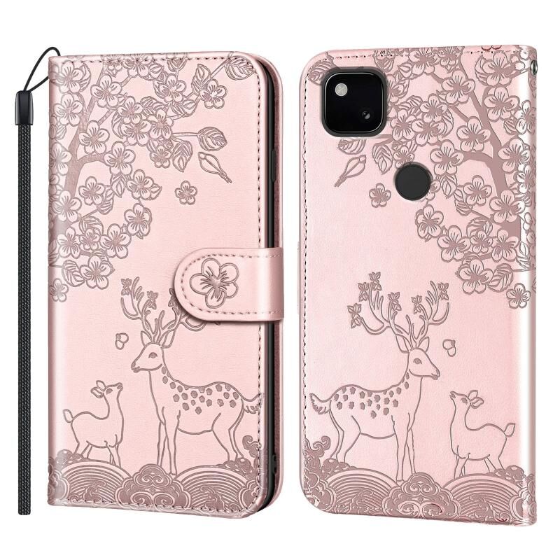 Για το Google Pixel 4a Sika Deer ανάγλυφο μοτίβο οριζόντια Flip PU δέρμα υπόθεση με θήκη & υποδοχή για κάρτες & πορτοφόλι & πλαίσιο φωτογραφιών (Rose Gold)