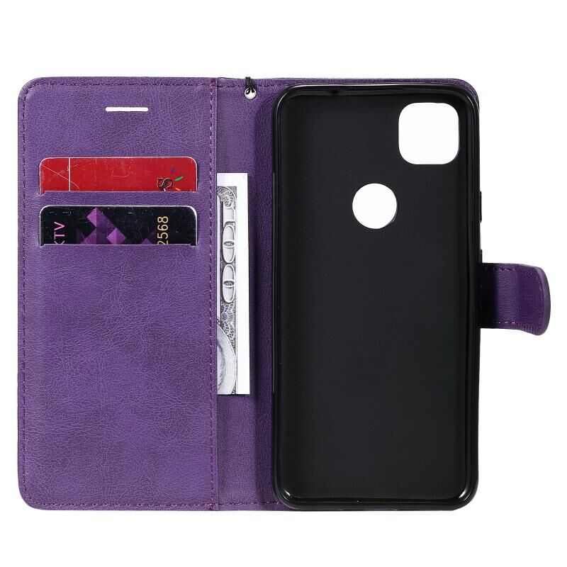 For Google Pixel 4a Solid Color Horizontal Flip Protective Leather Case with Holder & Card Slots & Wallet & Photo Frame & Lanyard(Purple)