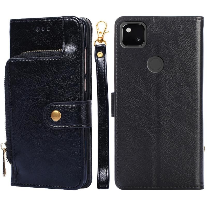 Για το Google Pixel 4a φερμουάρ τσάντα οριζόντια Flip δερμάτινη θήκη τηλεφώνου με θήκη & υποδοχές για κάρτες & κορδόνι (μαύρο)