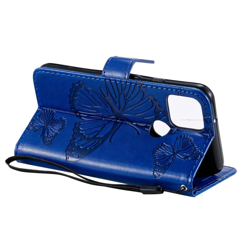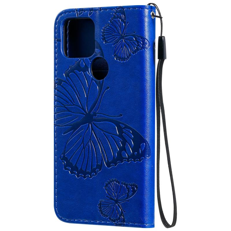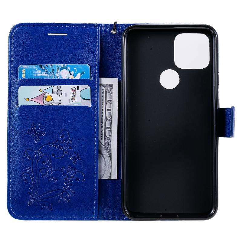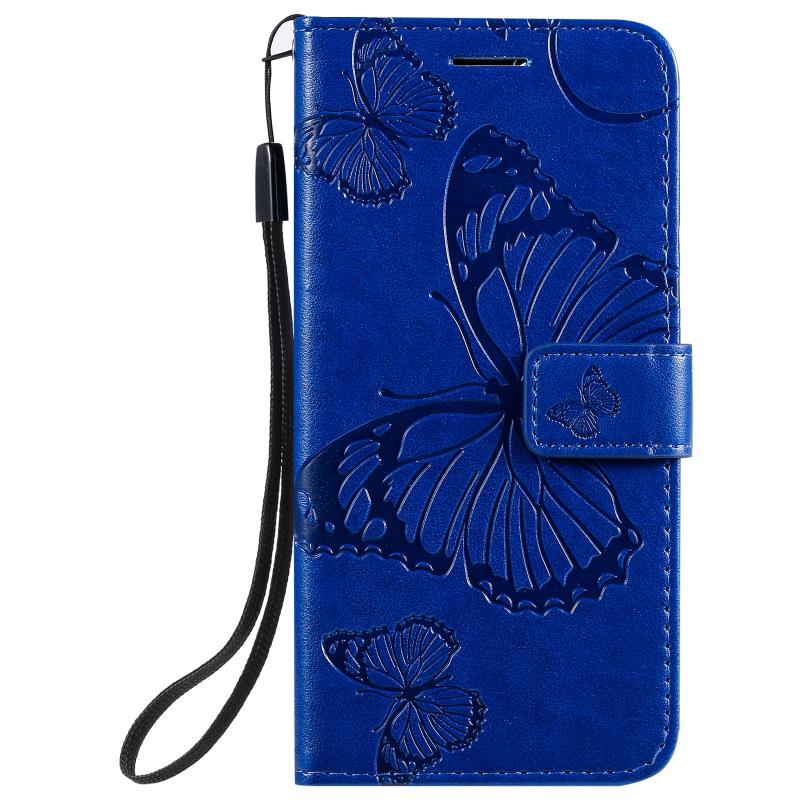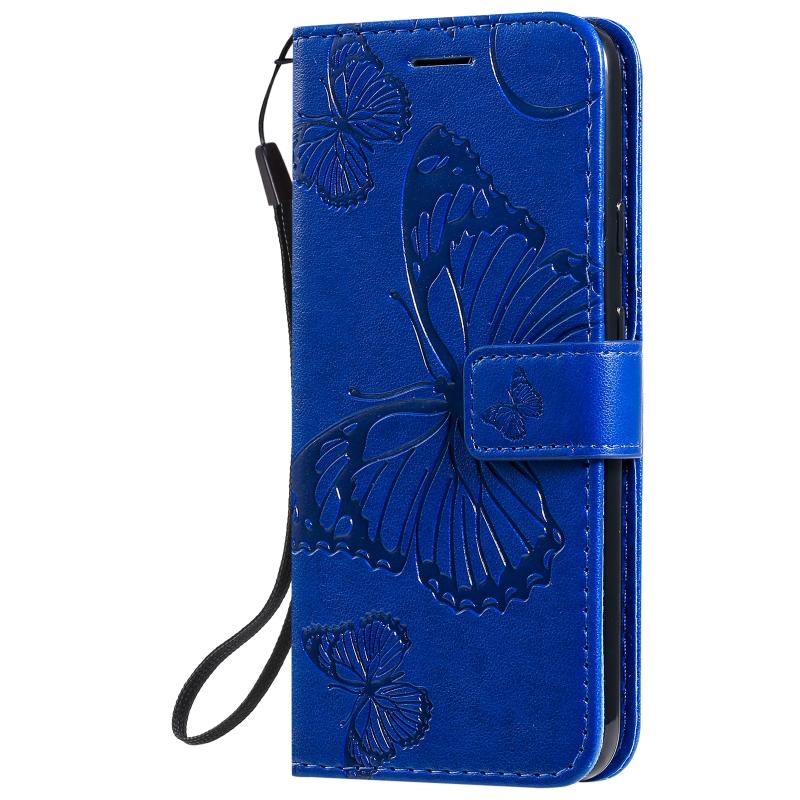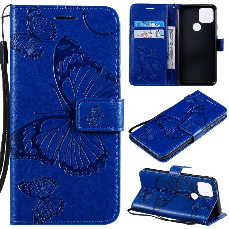 For Google Pixel 5 3D Butterflies Embossing Pattern Horizontal Flip Leather Case with Holder & Card Slot & Wallet & Lanyard(Blue)