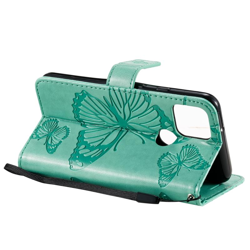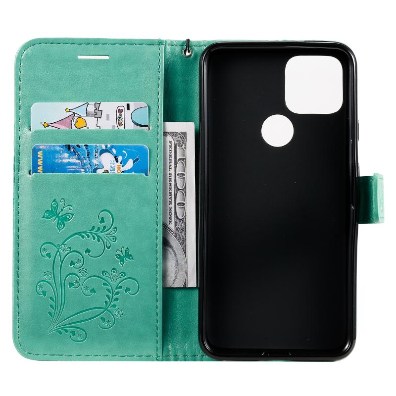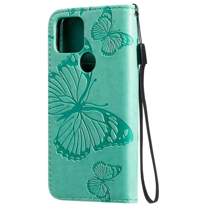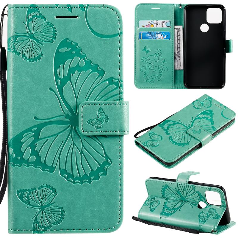For Google Pixel 5 3D Butterflies Embossing Pattern Horizontal Flip Leather Case with Holder & Card Slot & Wallet & Lanyard(Green)