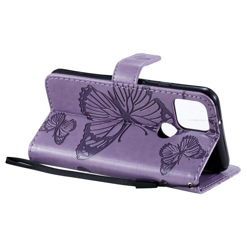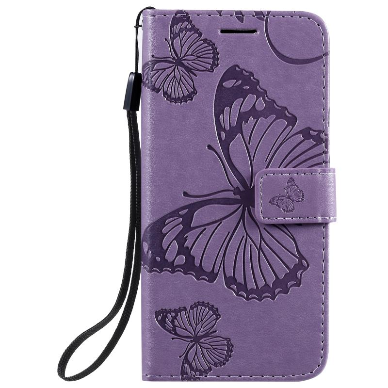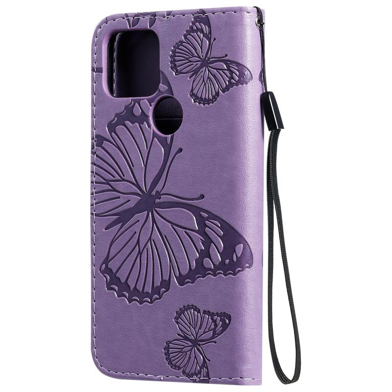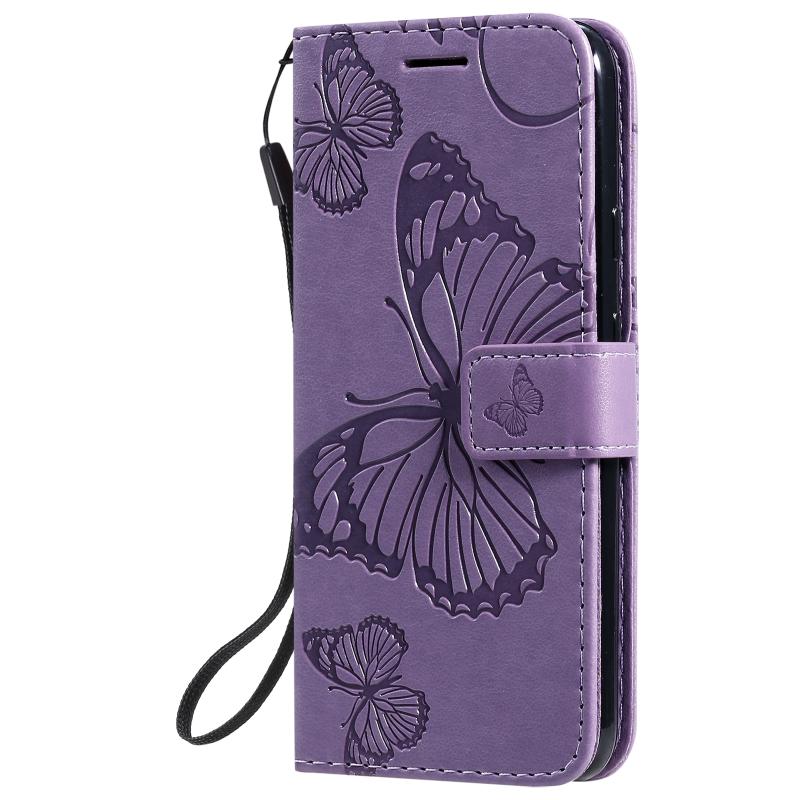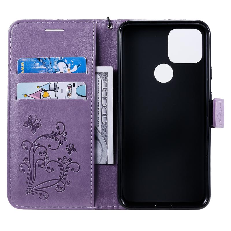 For Google Pixel 5 3D Butterflies Embossing Pattern Horizontal Flip Leather Case with Holder & Card Slot & Wallet & Lanyard(Purple)
