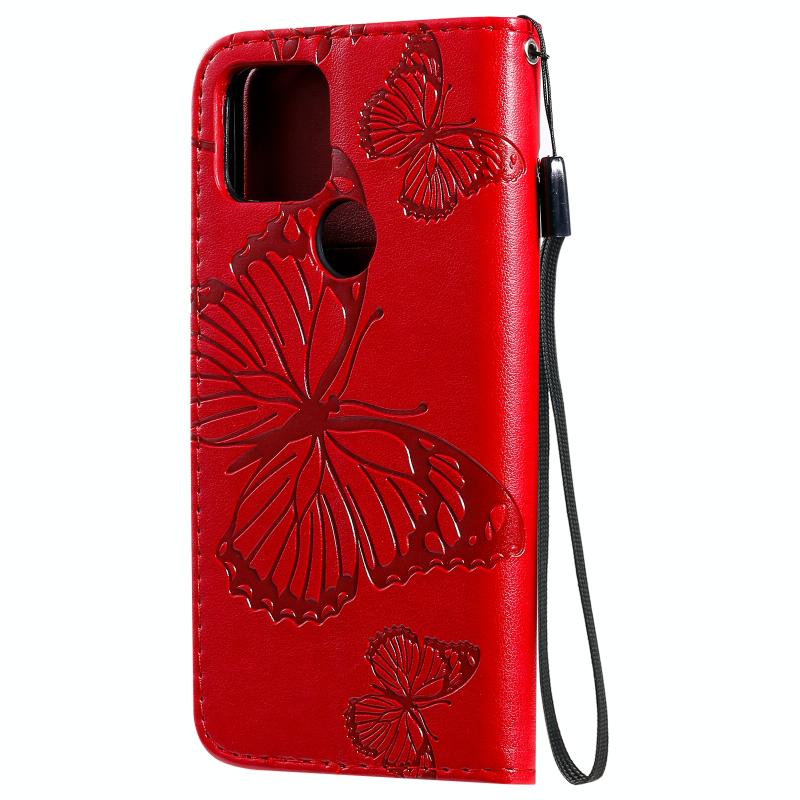 For Google Pixel 5 3D Butterflies Embossing Pattern Horizontal Flip Leather Case with Holder & Card Slot & Wallet & Lanyard(Red)