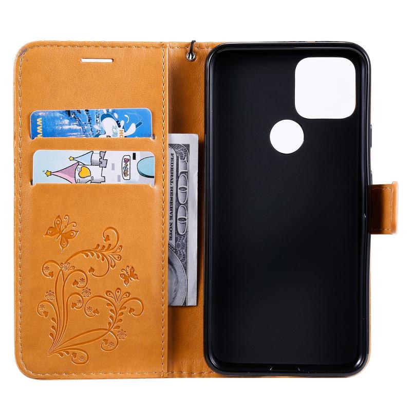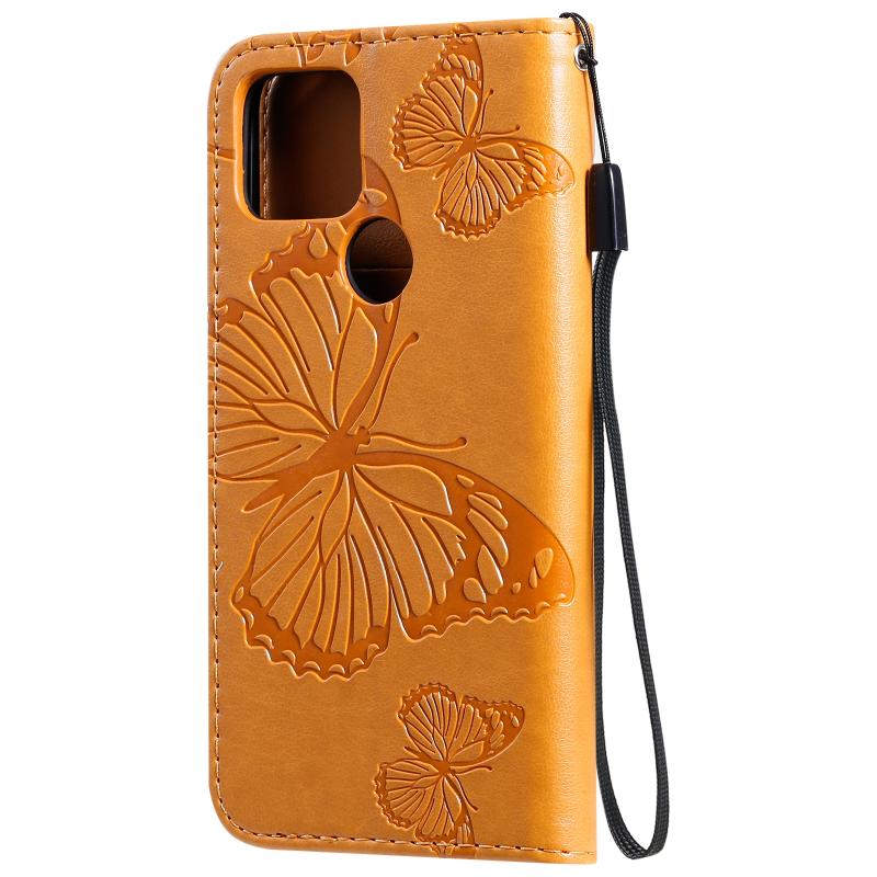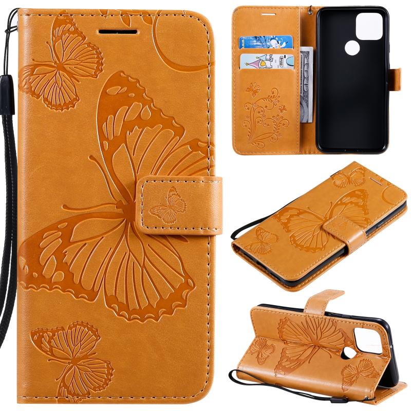 For Google Pixel 5 3D Butterflies Embossing Pattern Horizontal Flip Leather Case with Holder & Card Slot & Wallet & Lanyard(Yellow)