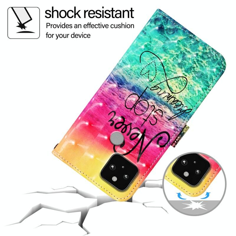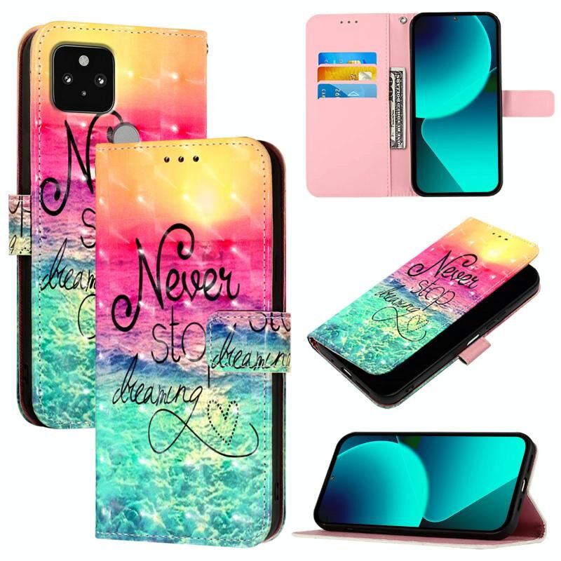 Θήκη τηλεφώνου από δέρμα με οριζόντια αναδίπλωση και τρισδιάστατη ζωγραφική για Google Pixel 5 (Κυνηγώντας Όνειρα)