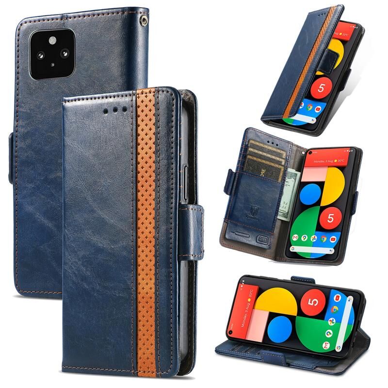 Για το Google Pixel 5 CaseNeo Splicing Διπλή μαγνητική πόρπη δερμάτινη θήκη τηλεφώνου (μπλε)