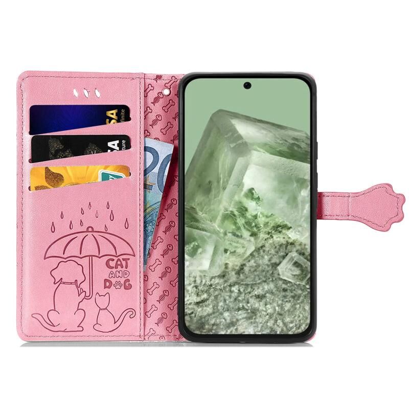 For Google Pixel 5 Cat and Dog Embossed Leather Phone Case(Pink)