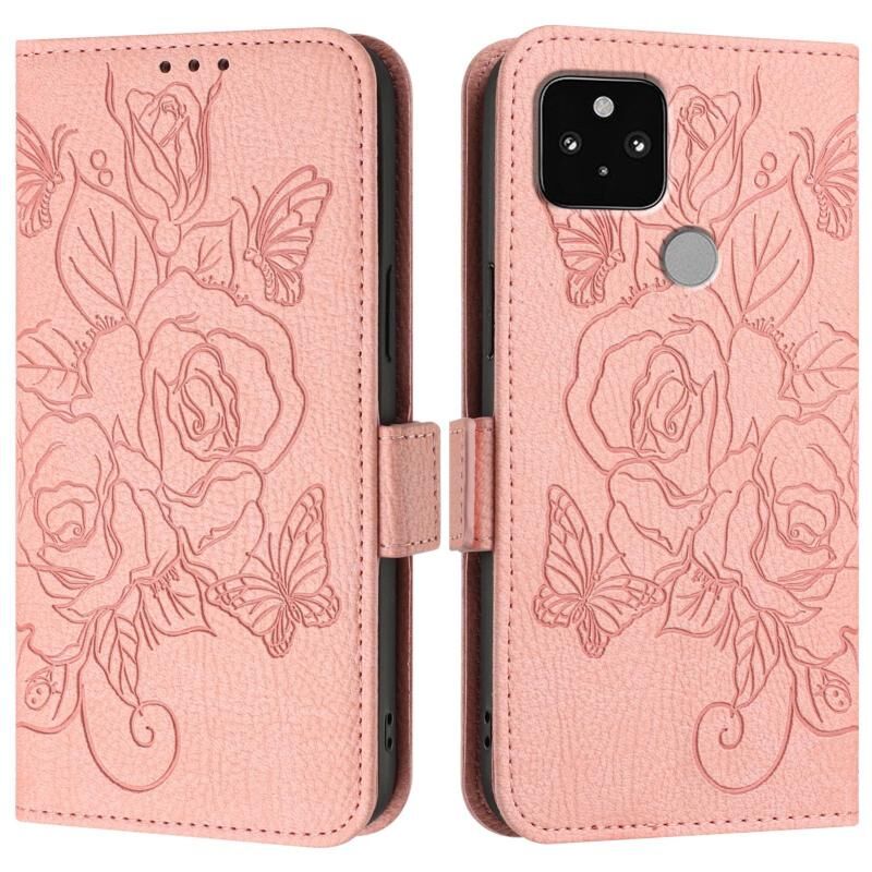 For Google Pixel 5 Embossed Rose RFID Anti-theft Leather Phone Case(Pink)