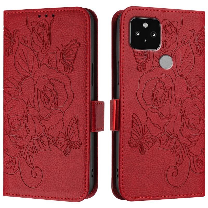For Google Pixel 5 Embossed Rose RFID Anti-theft Leather Phone Case(Red)