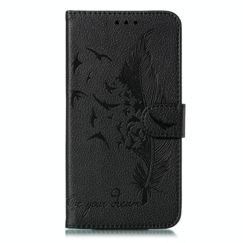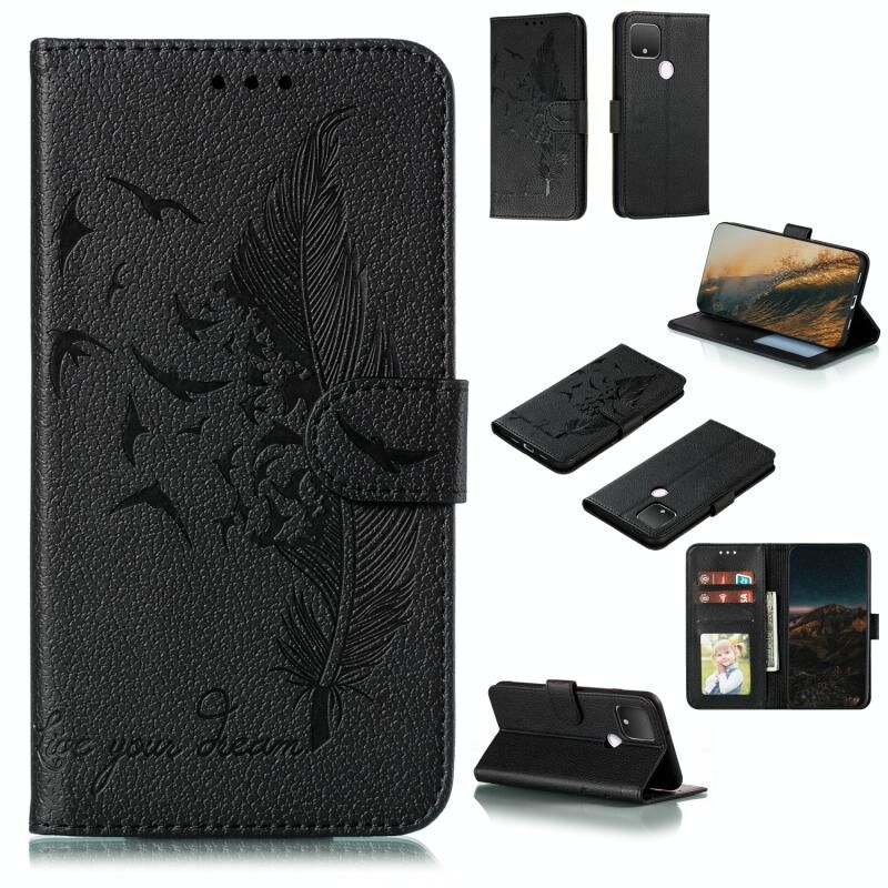 For Google Pixel 5 Feather Pattern Litchi Texture Horizontal Flip Leather Case with Wallet & Holder & Card Slots(Black)