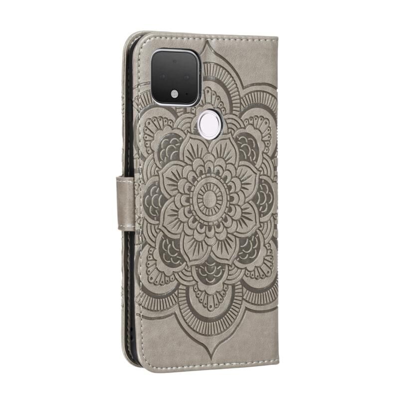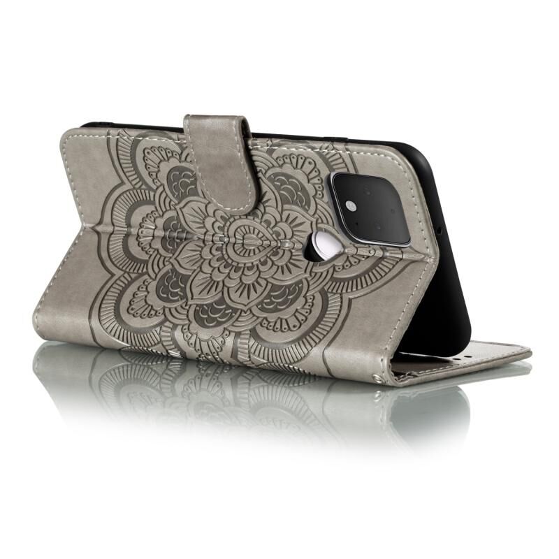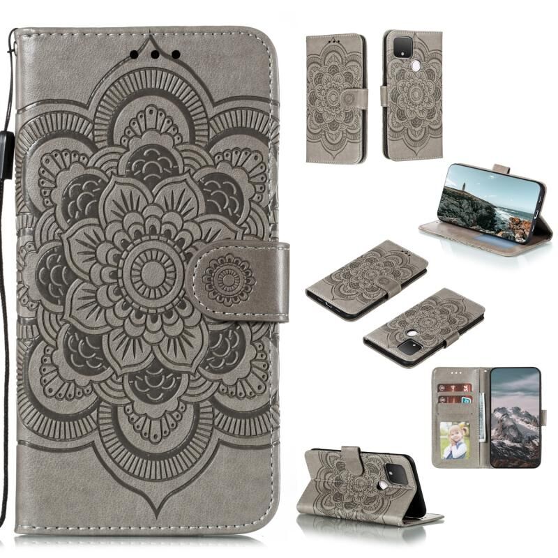 For Google Pixel 5 Mandala Embossing Pattern Horizontal Flip PU Leather Case with Holder & Card Slots & Walle & Lanyard(Gray)