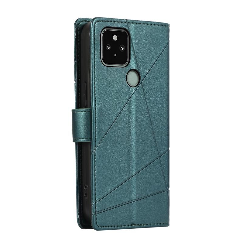 For Google Pixel 5 PU Genuine Leather Texture Embossed Line Phone Case(Green)