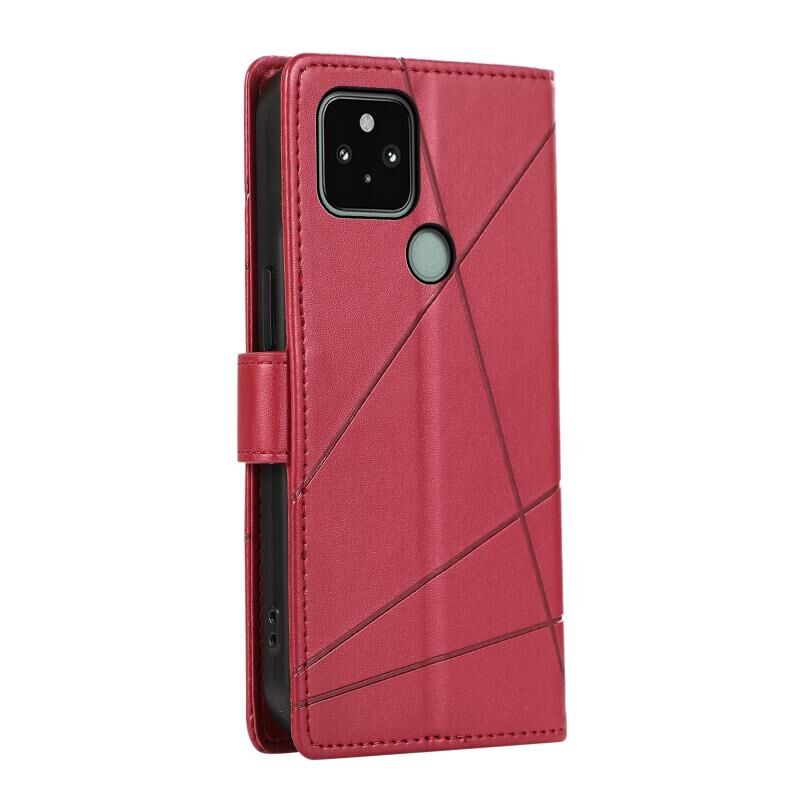For Google Pixel 5 PU Genuine Leather Texture Embossed Line Phone Case(Red)