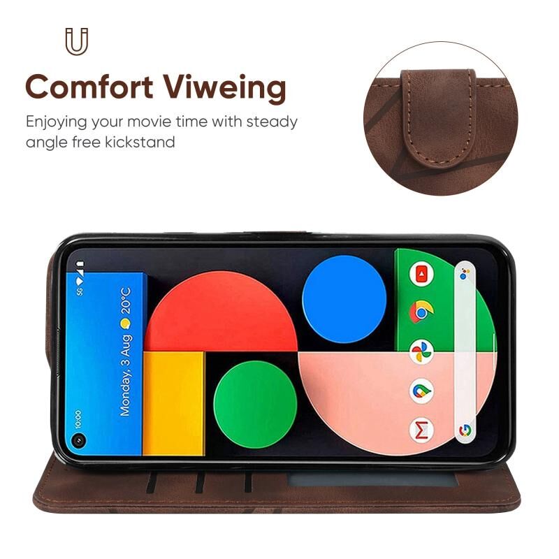 Για το Google Pixel 5 Skin Feel Γεωμετρικές γραμμές δερμάτινη θήκη τηλεφώνου (καφέ)